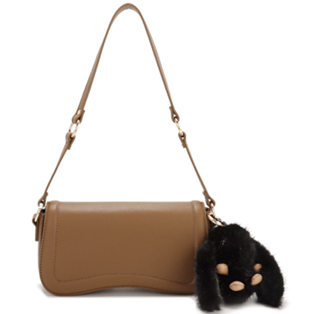 SMOOTH CURVED CROSSBODY BAG W DOLL KEYCHAIN