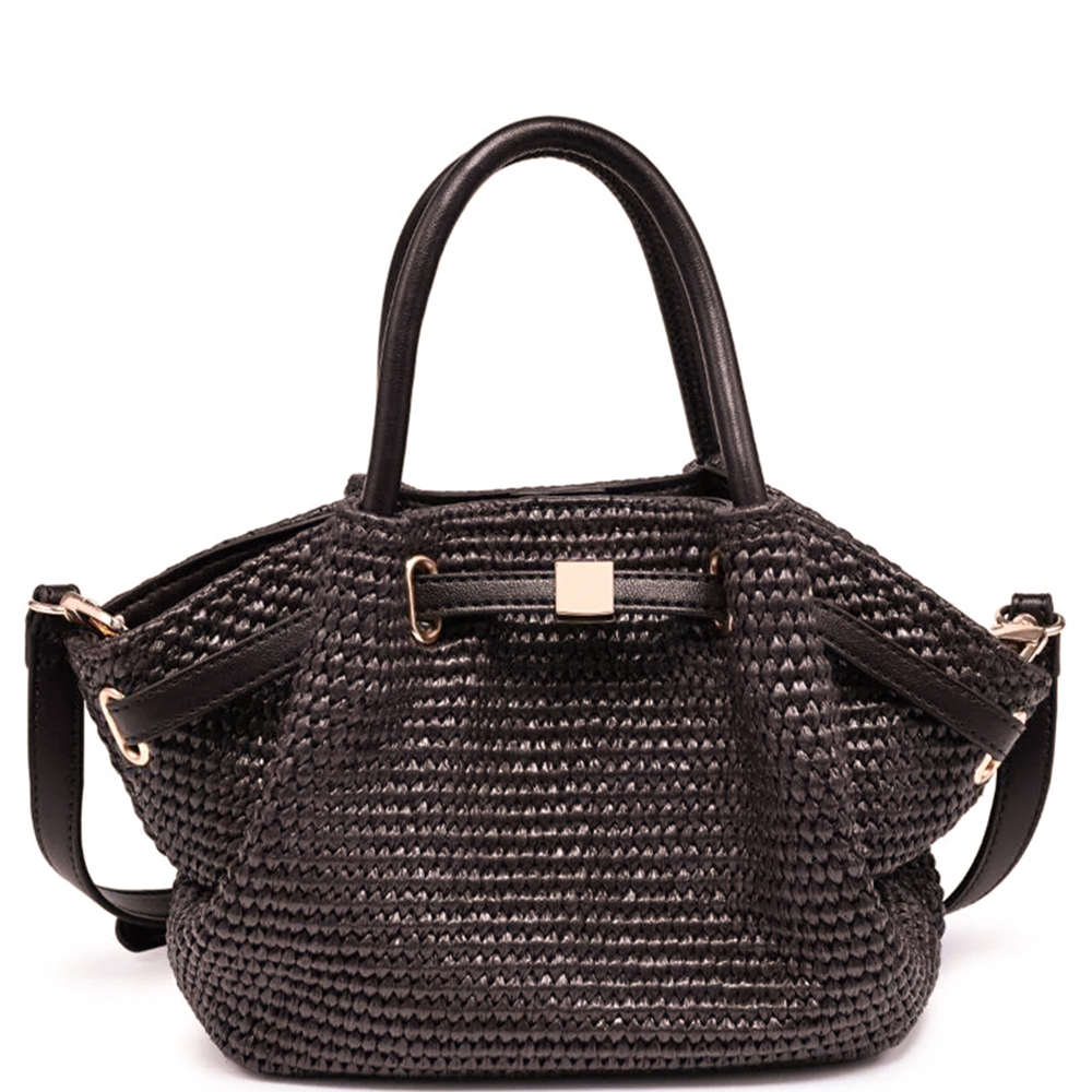 WOVEN STRAW PATTERN DESIGN SHOULDER CROSSBODY BAG