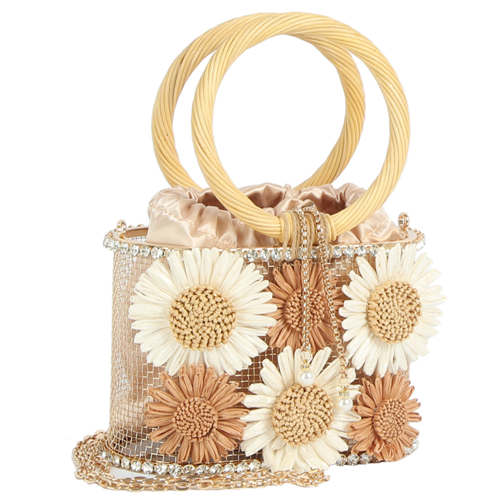 FLOWER CHIC RHINESTONE DESIGN HANDLE CROSSBODY BAG