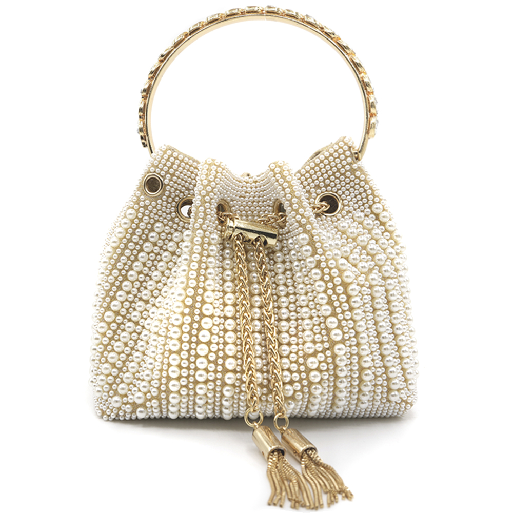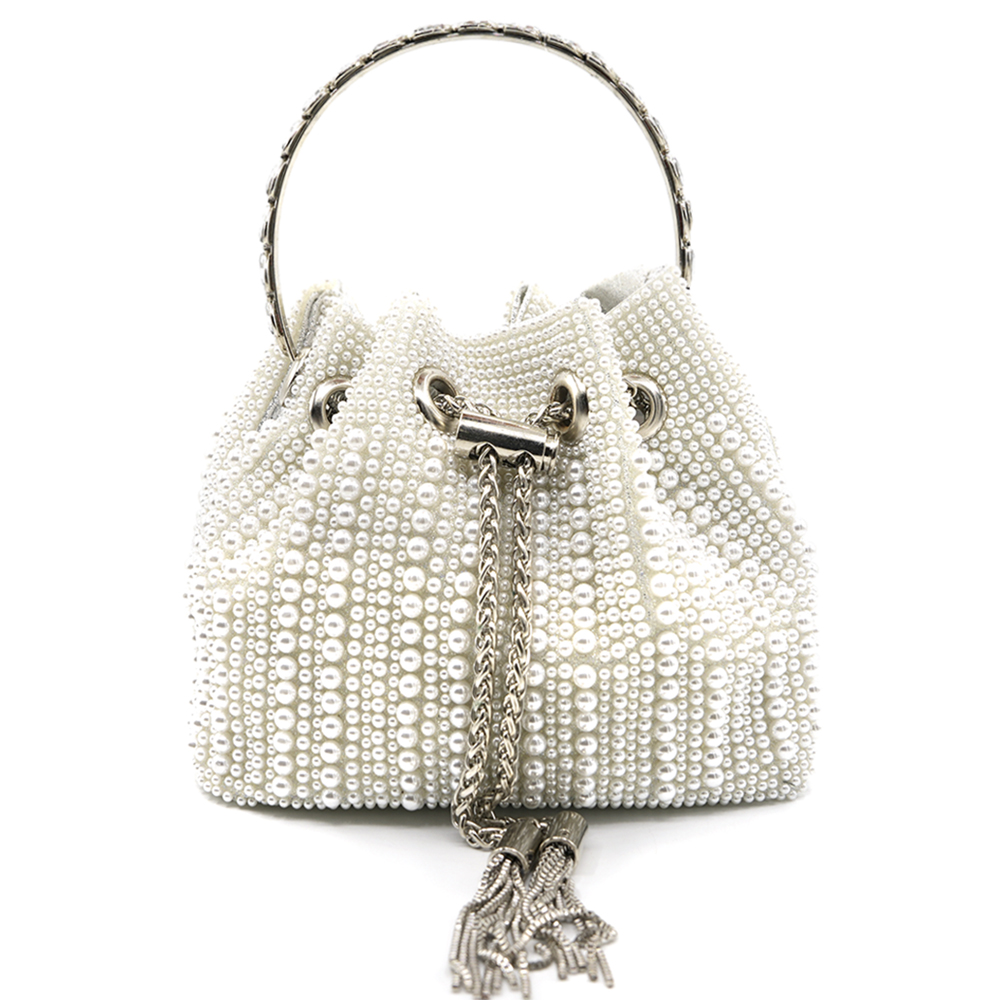 STYLISH DRAWSTRING PEARL BUCKET HANDLE BAG