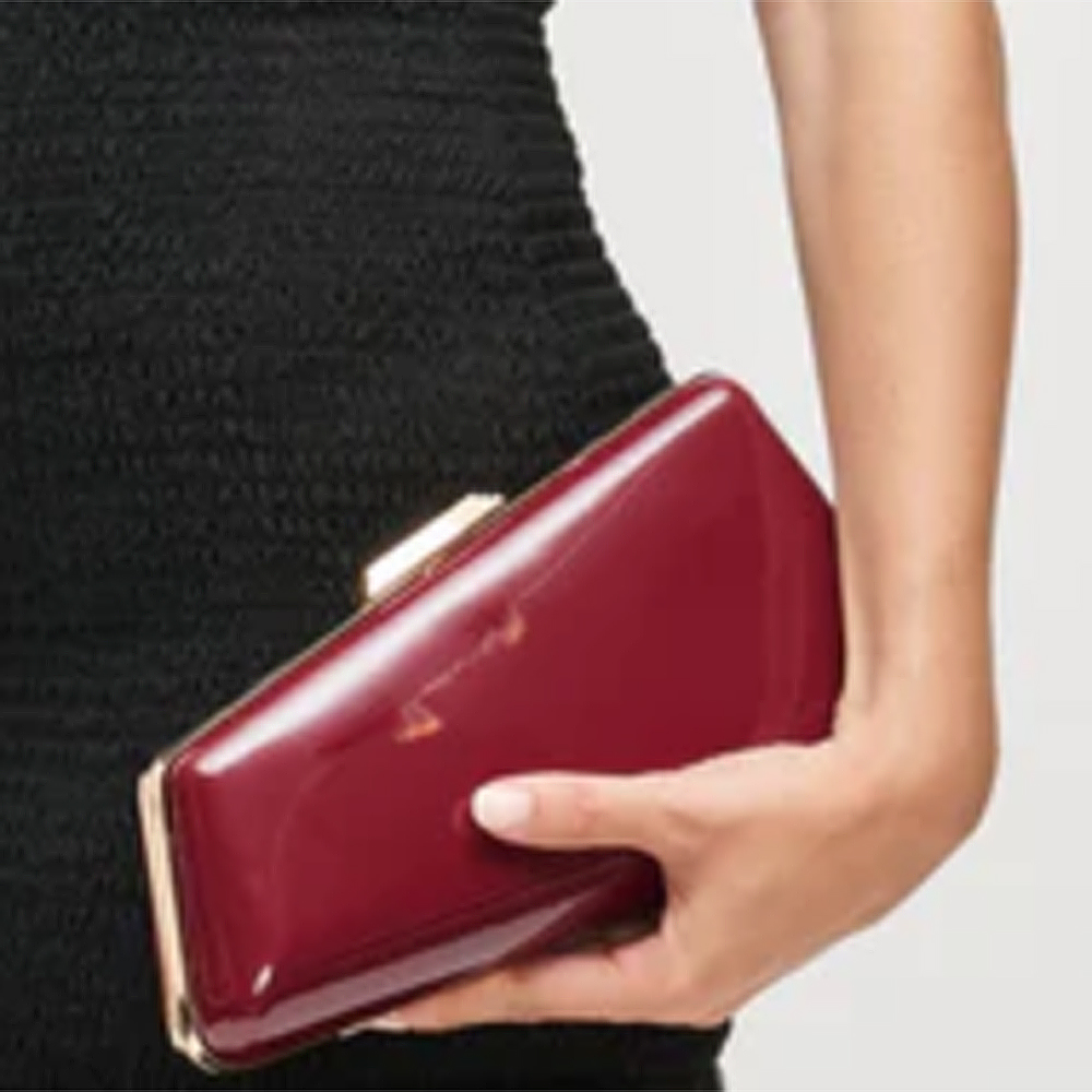 PATENT ASYMMETRICAL IRENE EVENING BAG