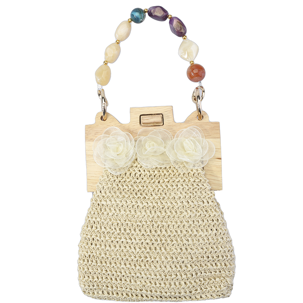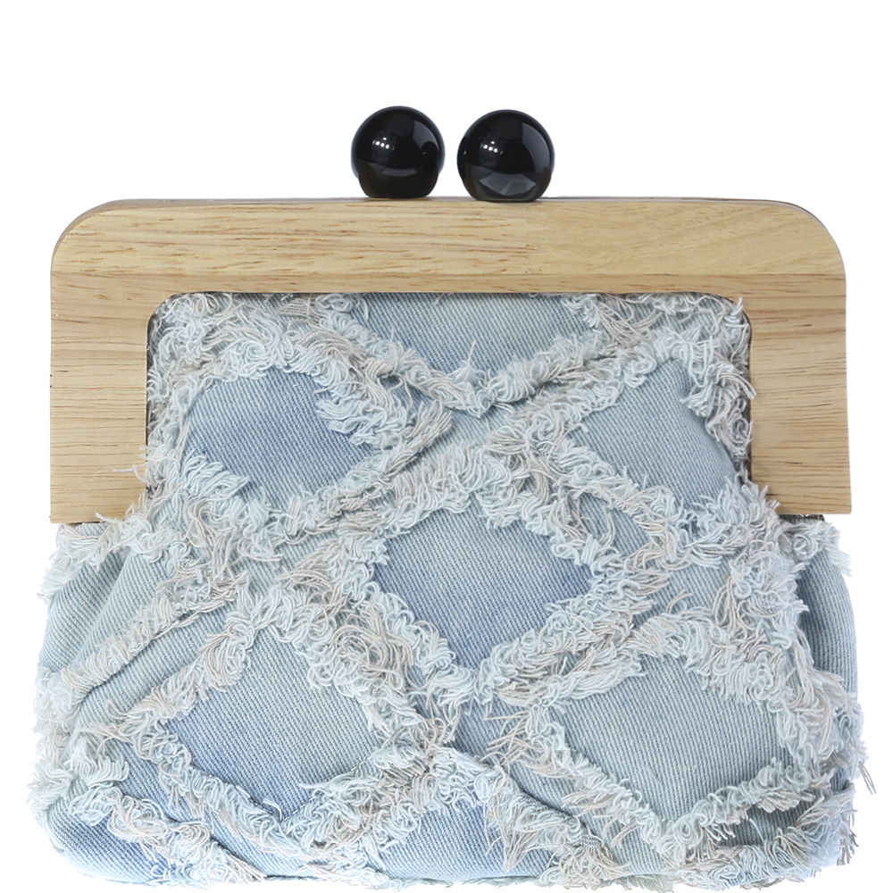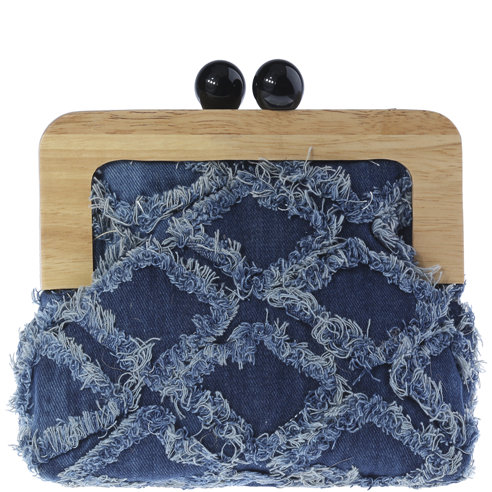 MODERN PATTERN DESIGN WOOD HANDLE EVENING CLUTCH BAG