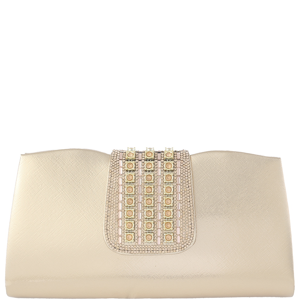 FASHION FRONT METAL DESIGN EVENING CLUTCH