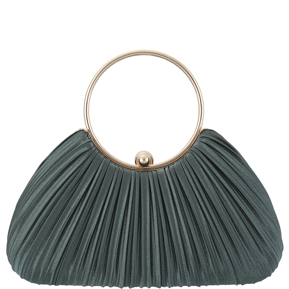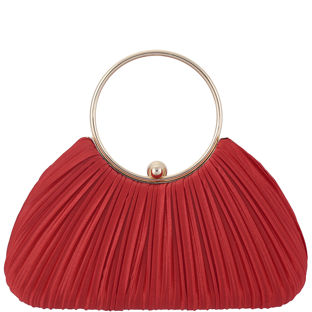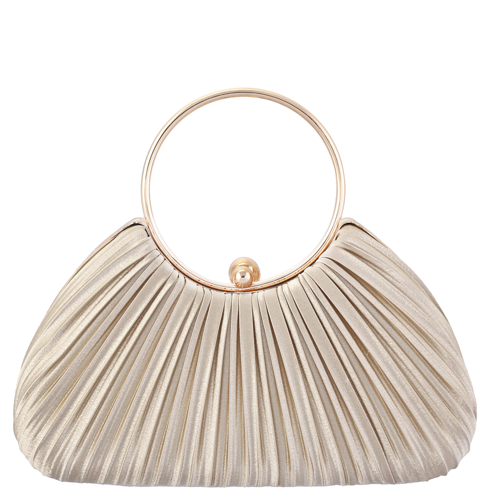 RHINESTONE V PLEATED EVENING CLUTCH BAG