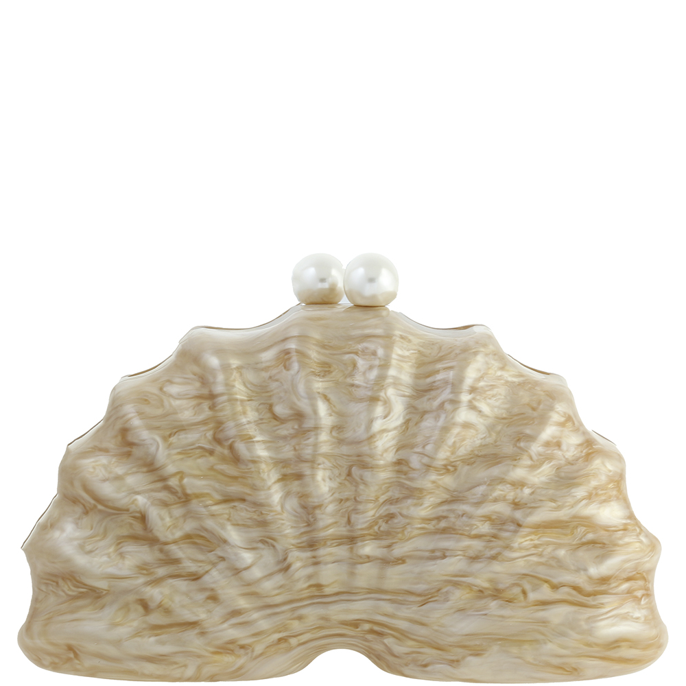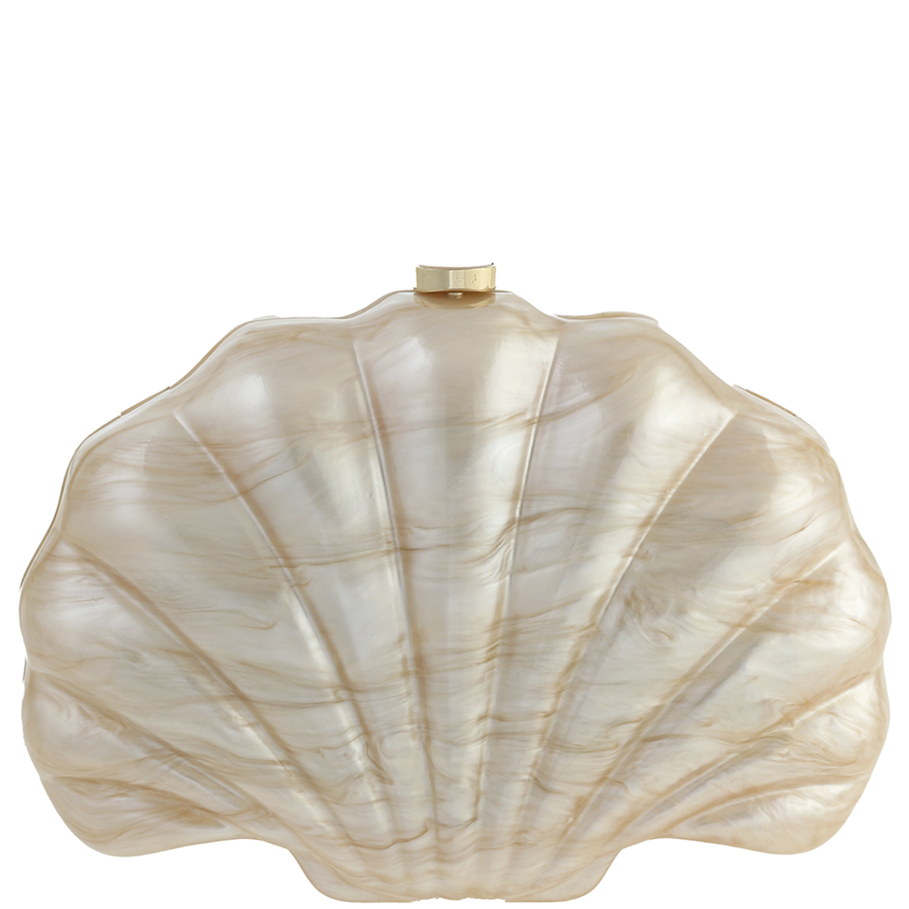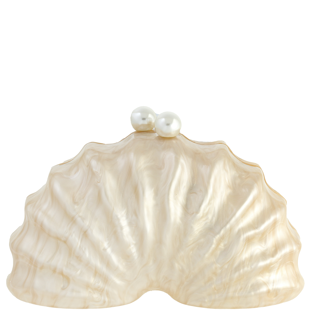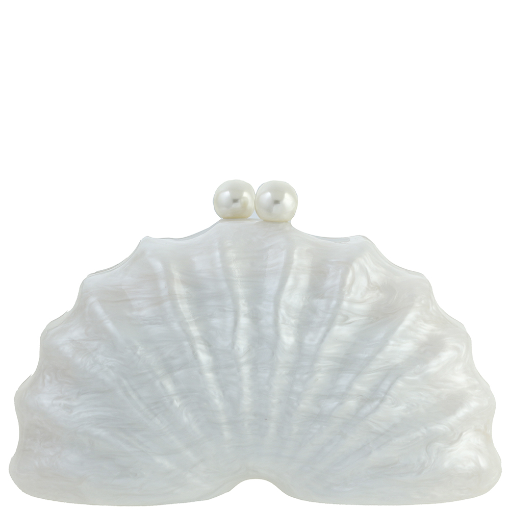 PEARL ACRYLIC FAN SHELL SHAPE EVENING CLUTCH