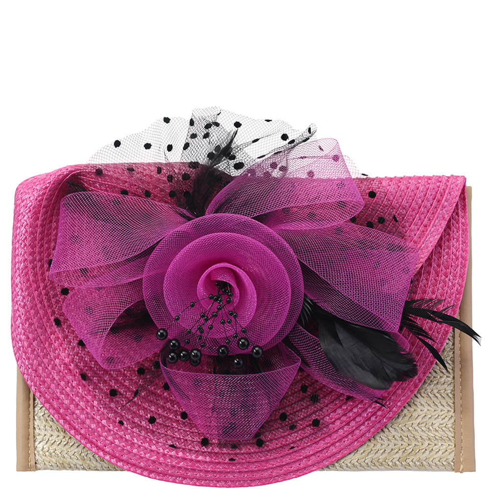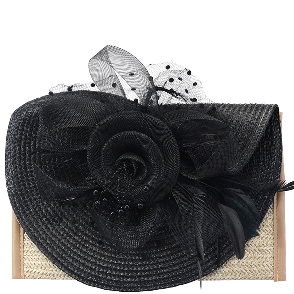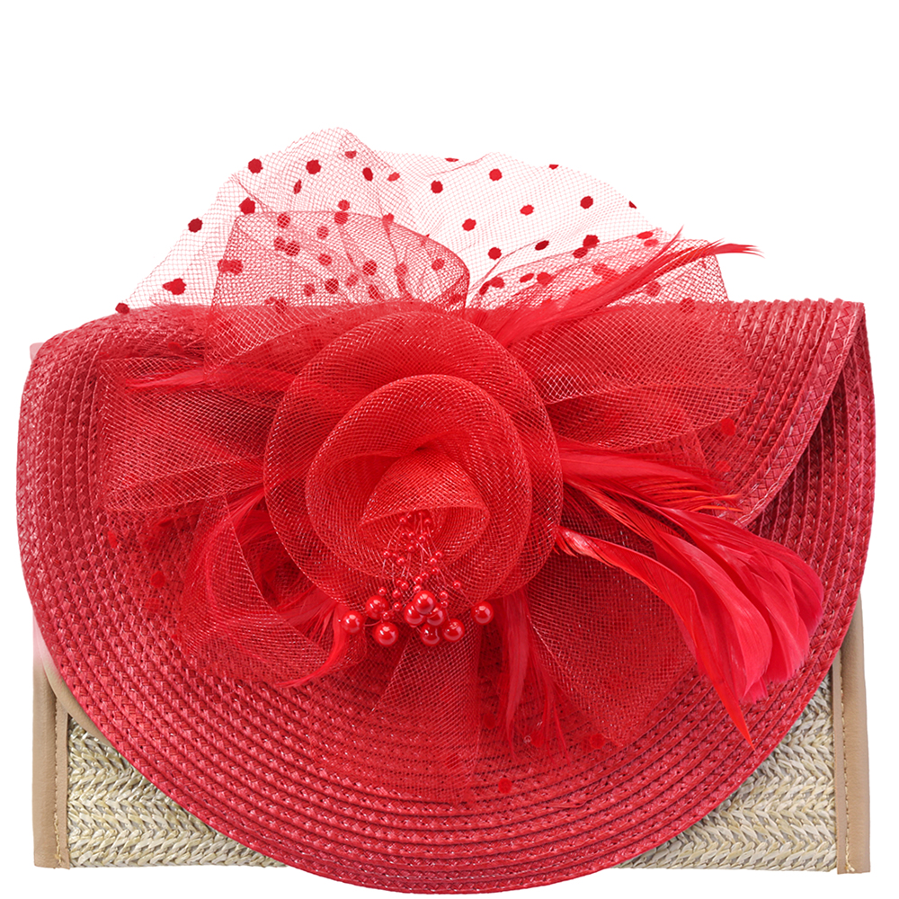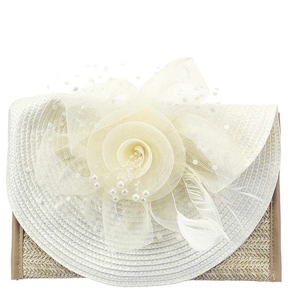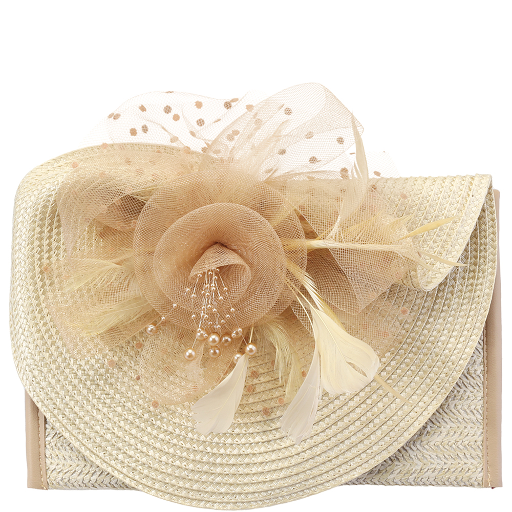 FASHION WOVEN FASCINATOR FEATHER DESIGN EVENING CLUTCH