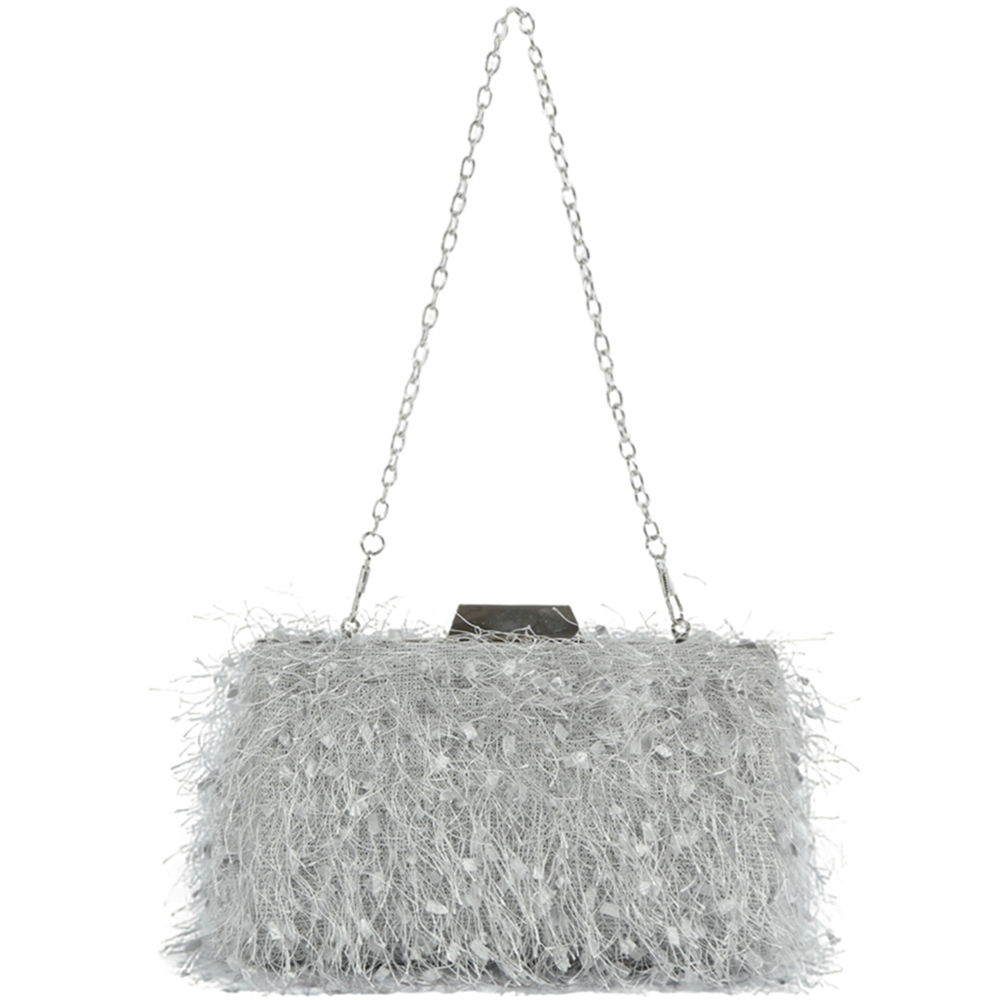 ALL OVER FUR HANDLE EVENING CLUTCH BAG