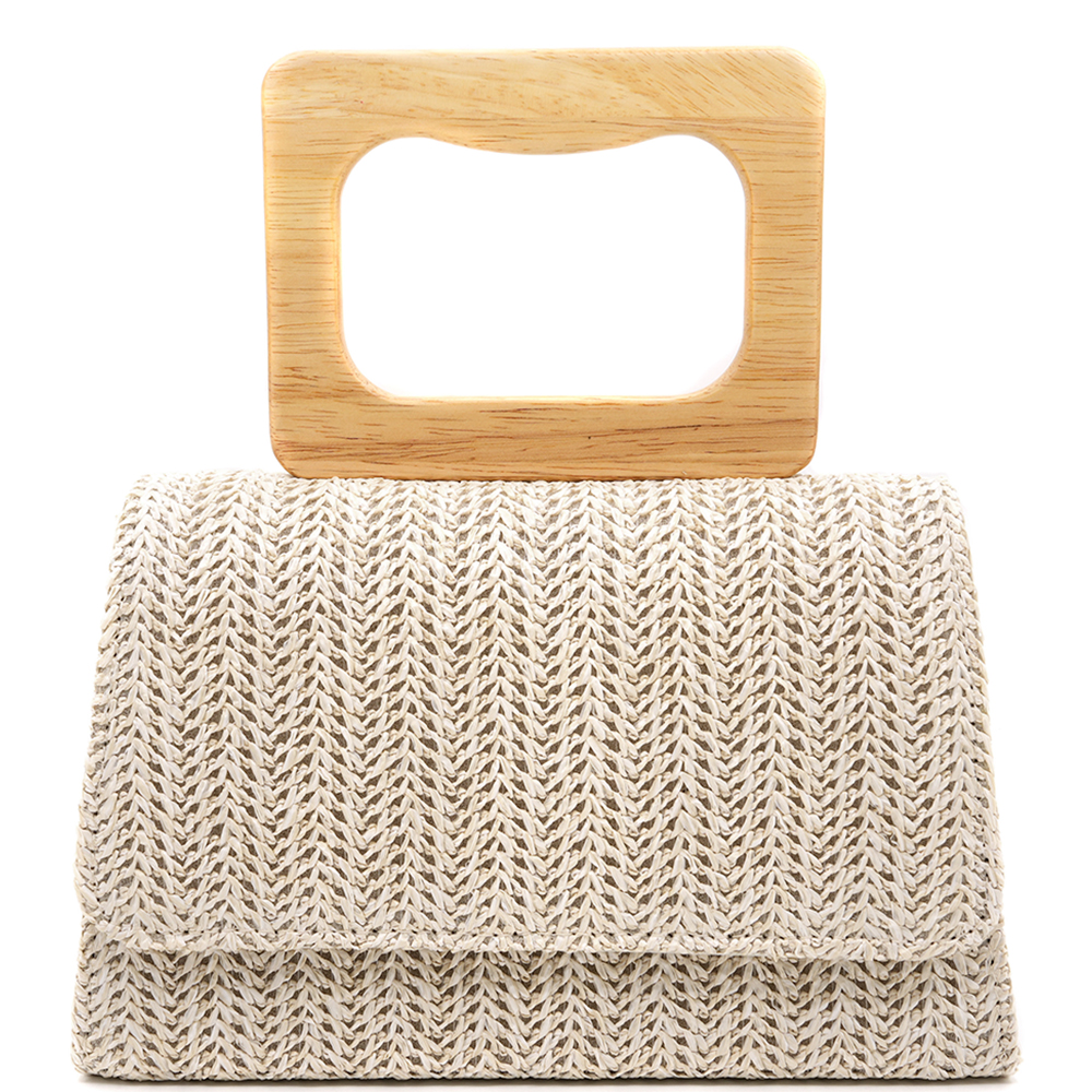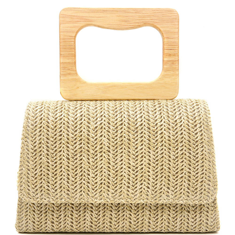 WOVEN STRAW HANDLE EVENING BAG