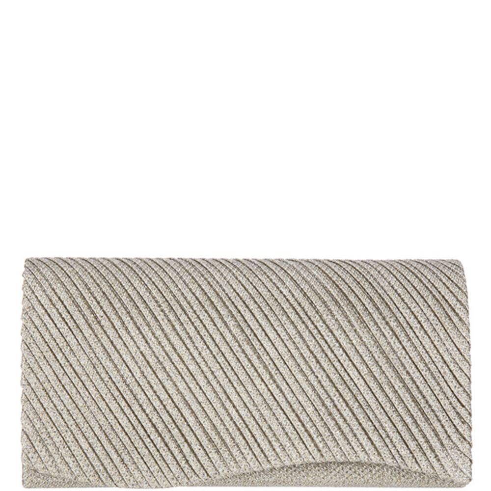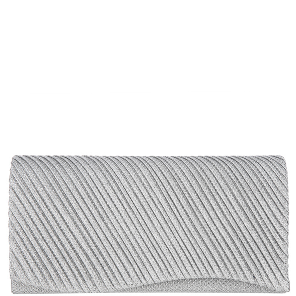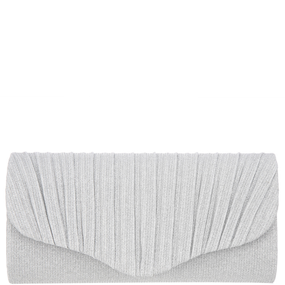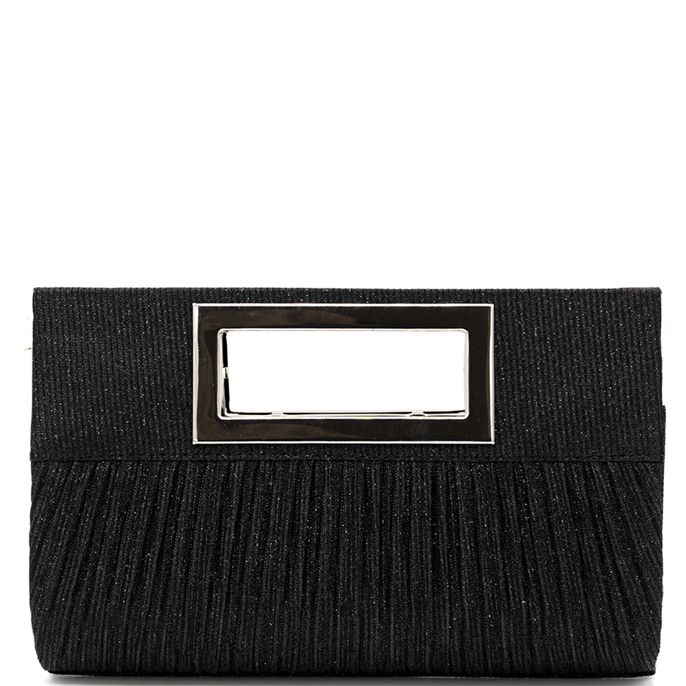 TEXTURED METALLIC STRAIGHT PLEATED FLAP STRUCTURED RECTANGULAR CLUTCH BAG