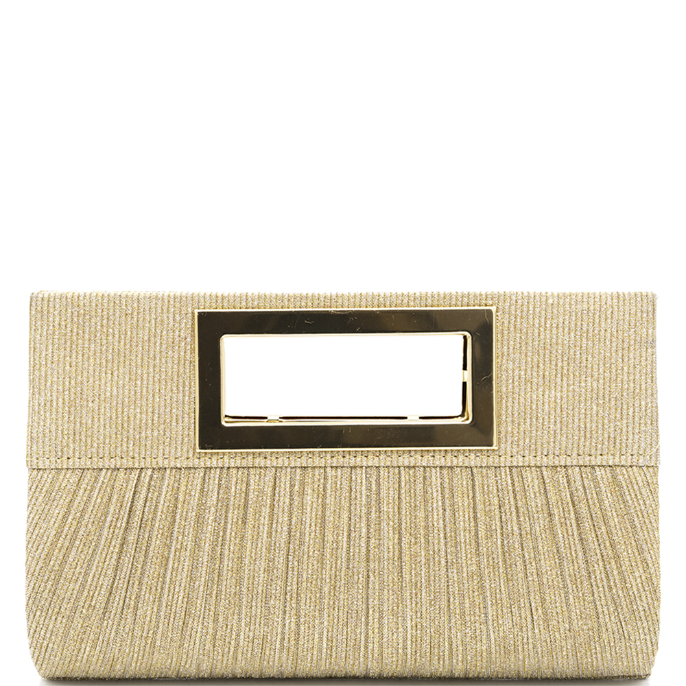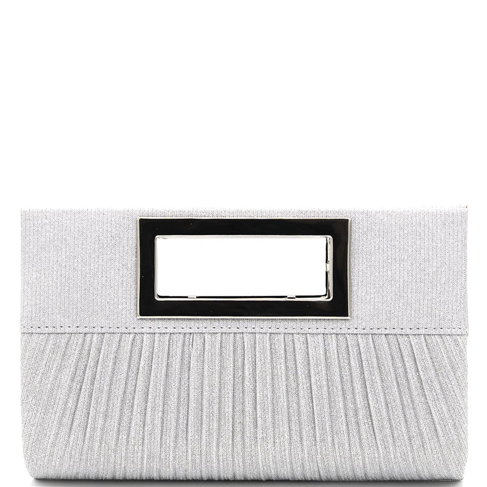 TEXTURED METALLIC STRAIGHT PLEATED BAND ACCENT STRUCTURED RECTANGULAR CLUTCH BAG
