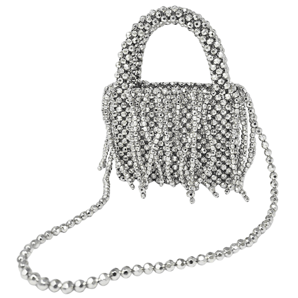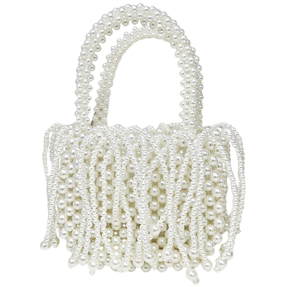 PEARL ALL OVER FRINGE HANDLE EVENING BAG