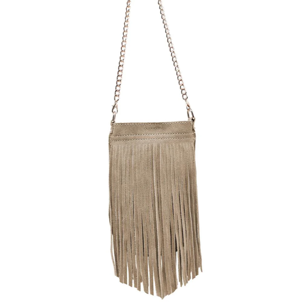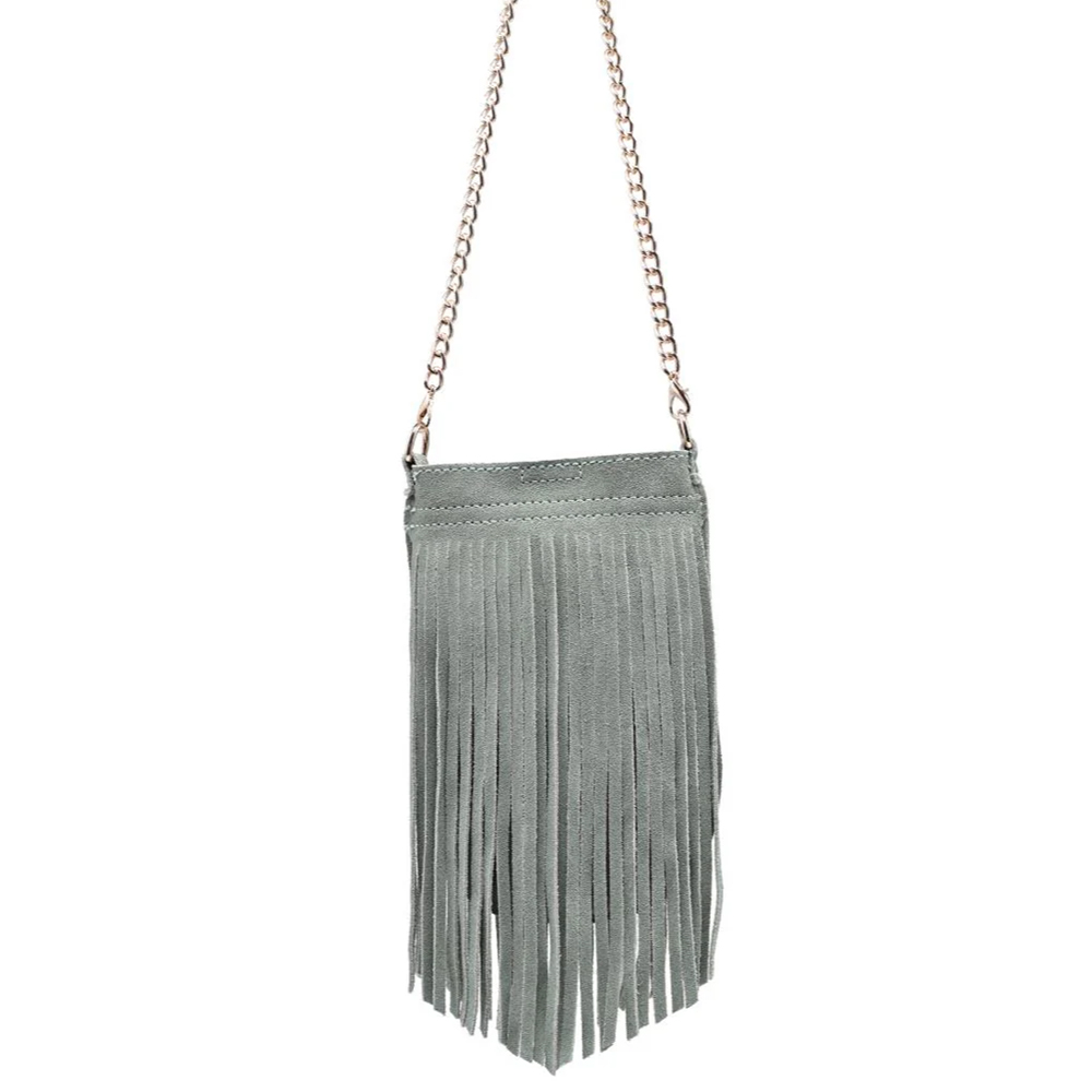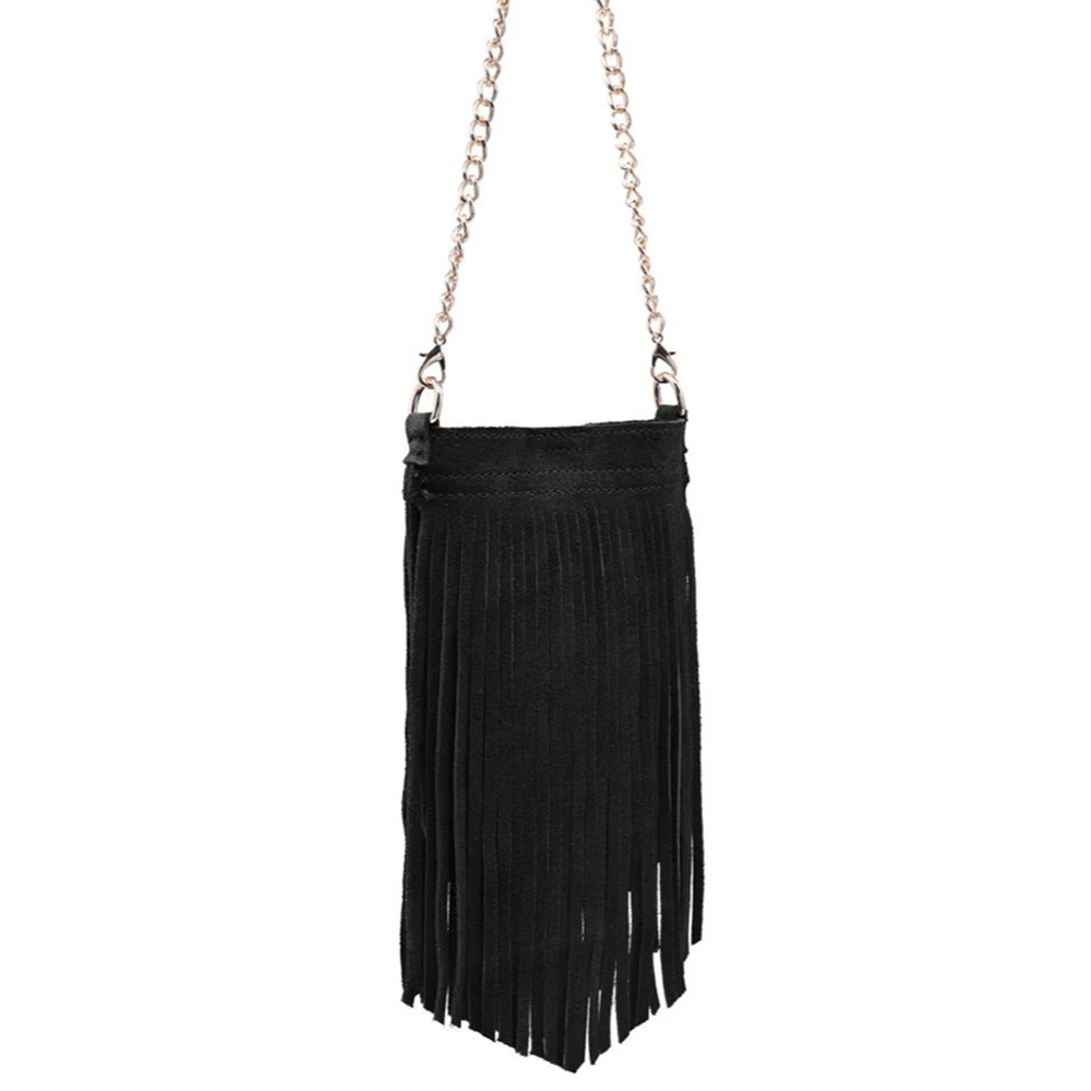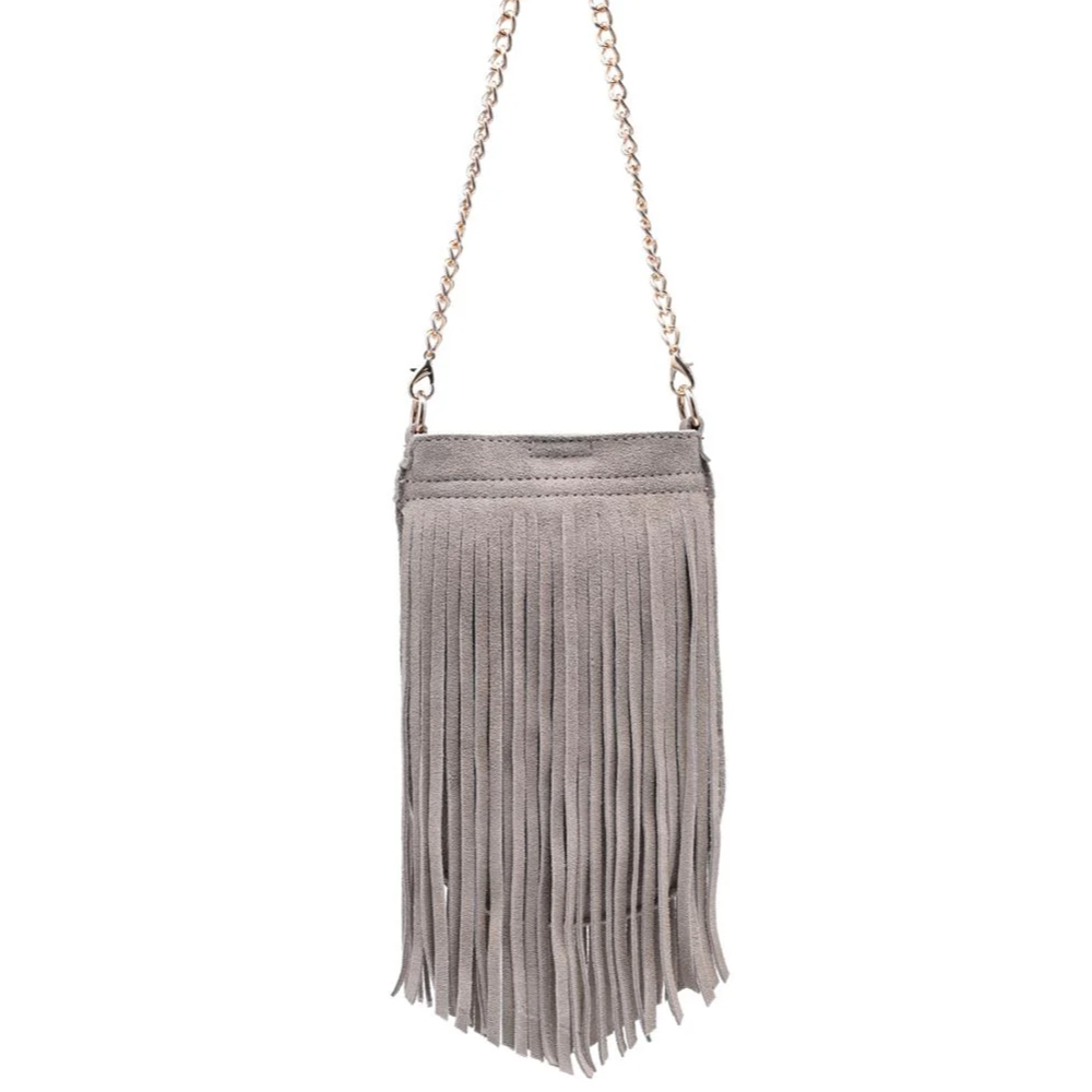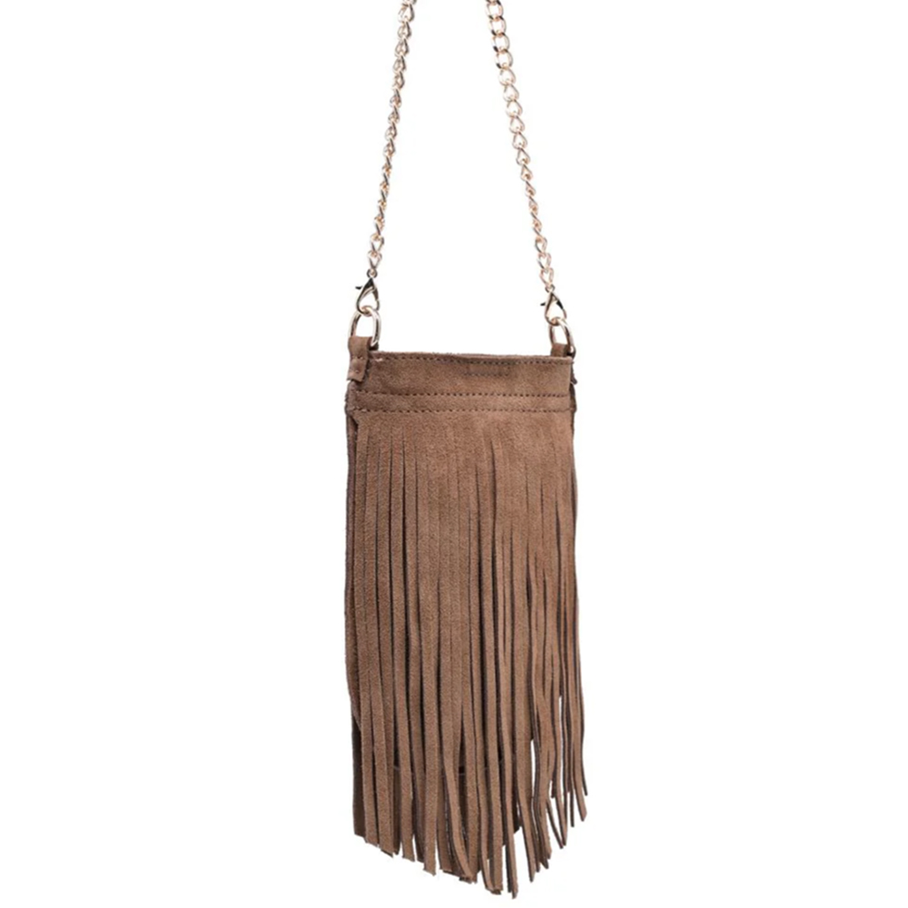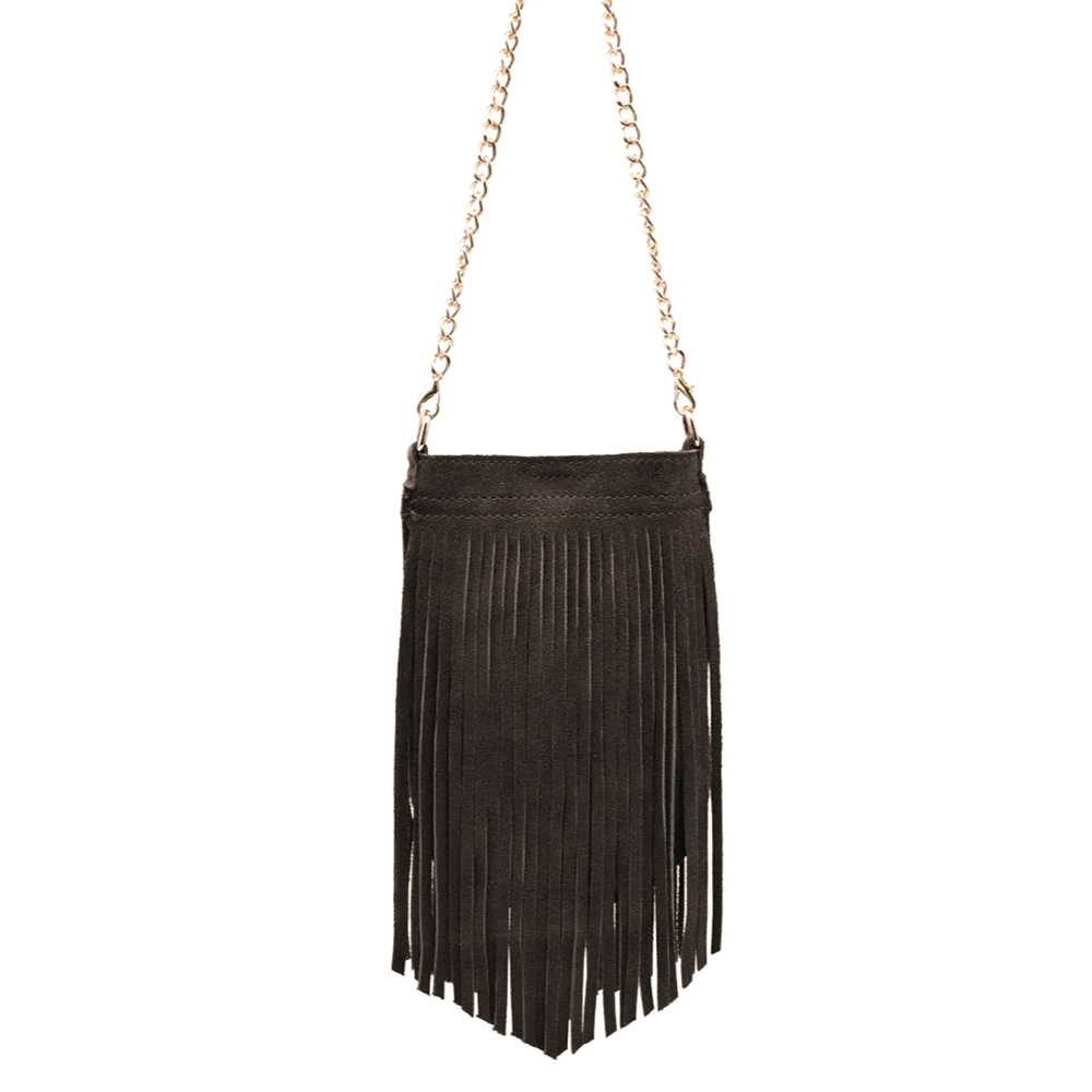 LONG SUEDE FRINGE DESIGN RIVER EVENING CROSSBODY BAG