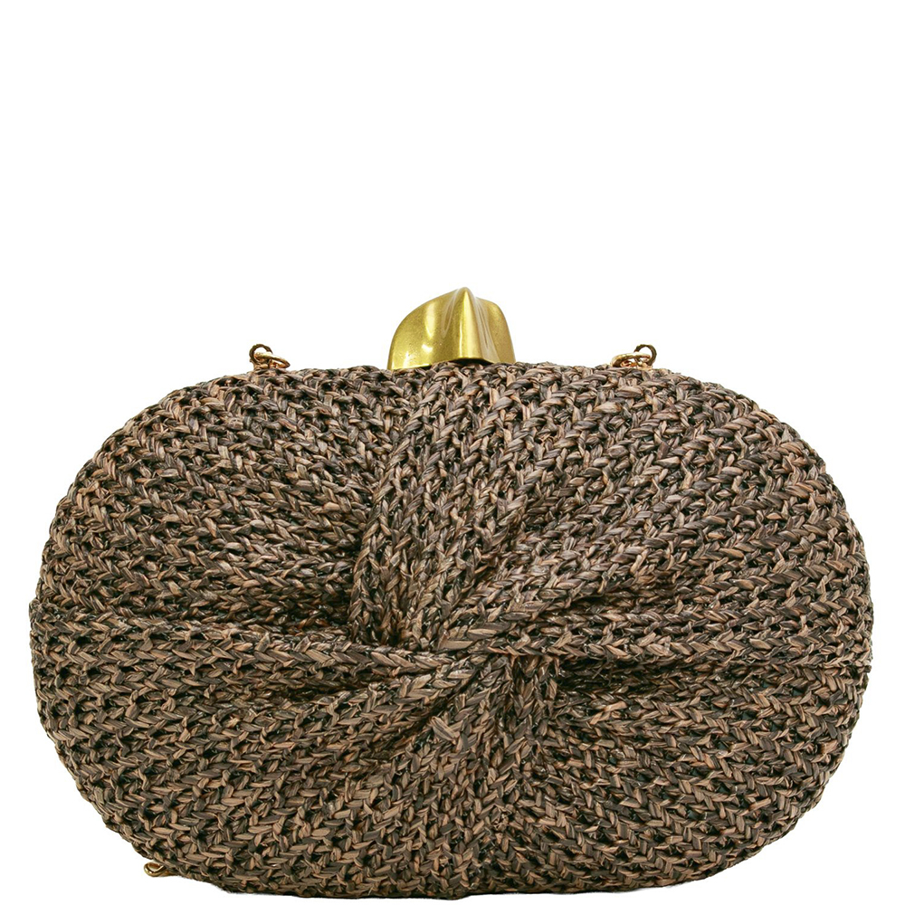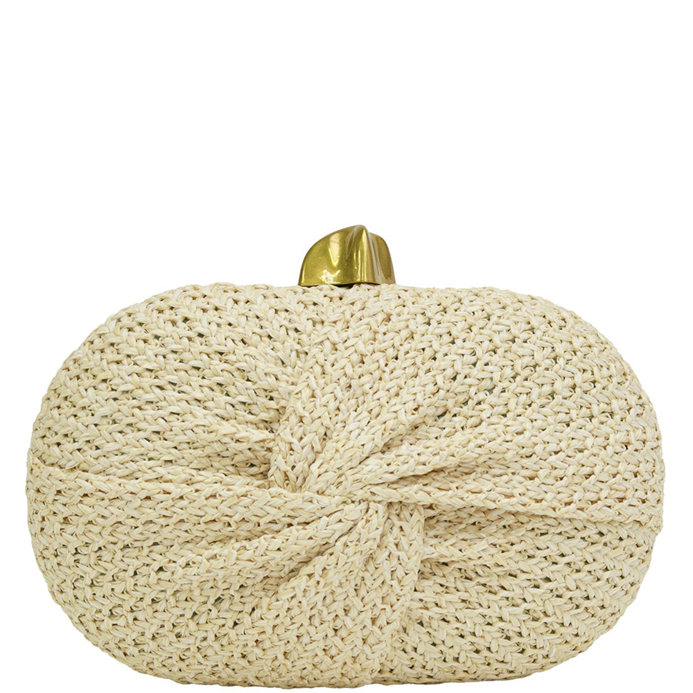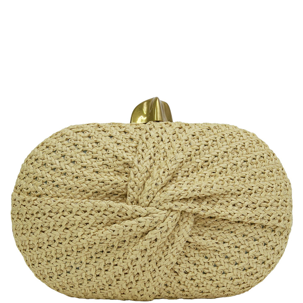 FRONT TWIST STRAW EVENING CLUTCH BAG