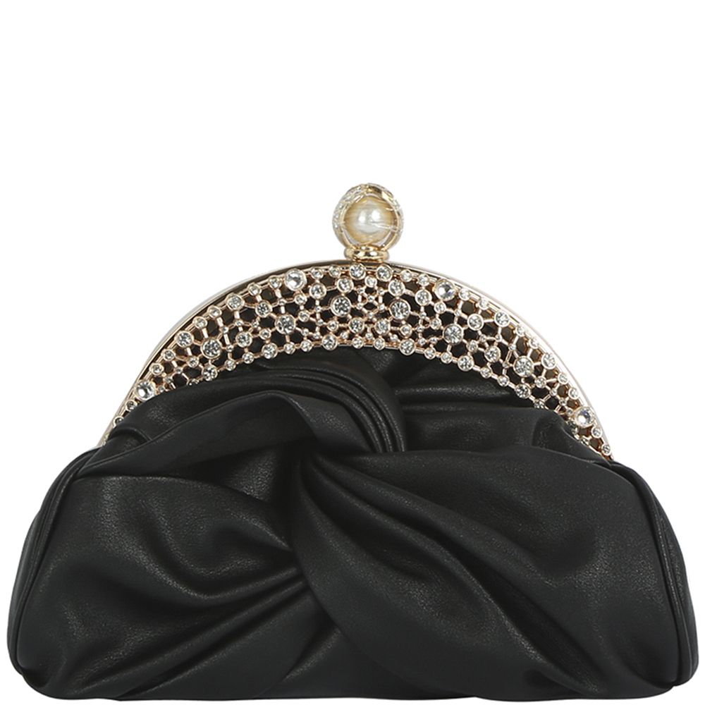 STYLISH TWIST PLEATED RHINESTONE EVENING CLUTCH