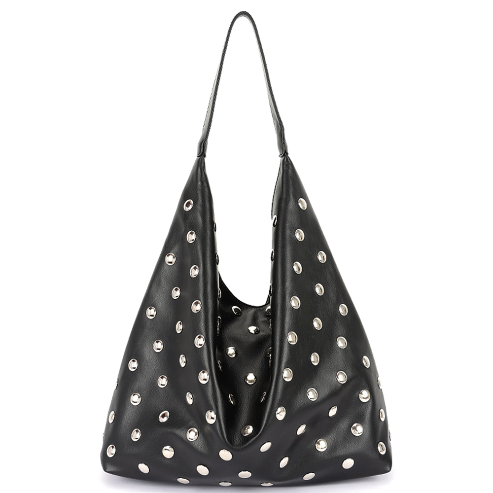 KNOT SMOOTH STUDDED SHOULDER HOBO BAG