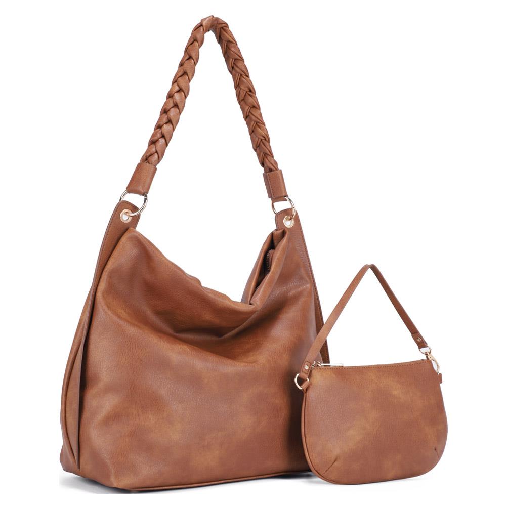 BRAID STRAP HOBO BAG WITH MINI POUCH SET