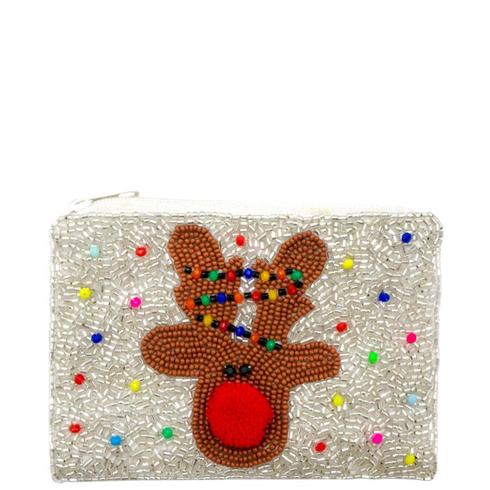 SEED BEAD MERRY BRIGHT CHRISTMAS MINI COIN PURSE