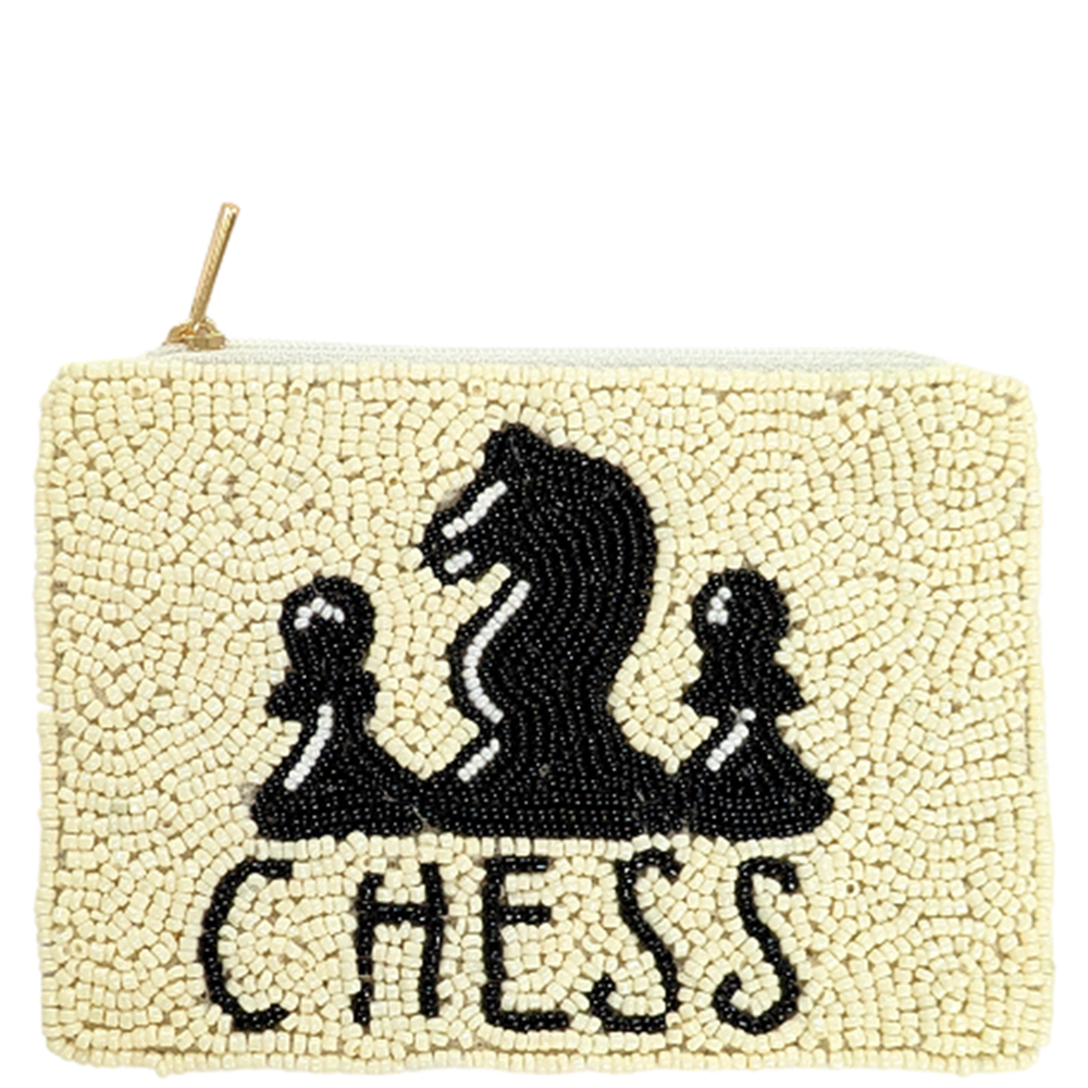 SEED BEAD HEART CHESS COIN PURSE BAG