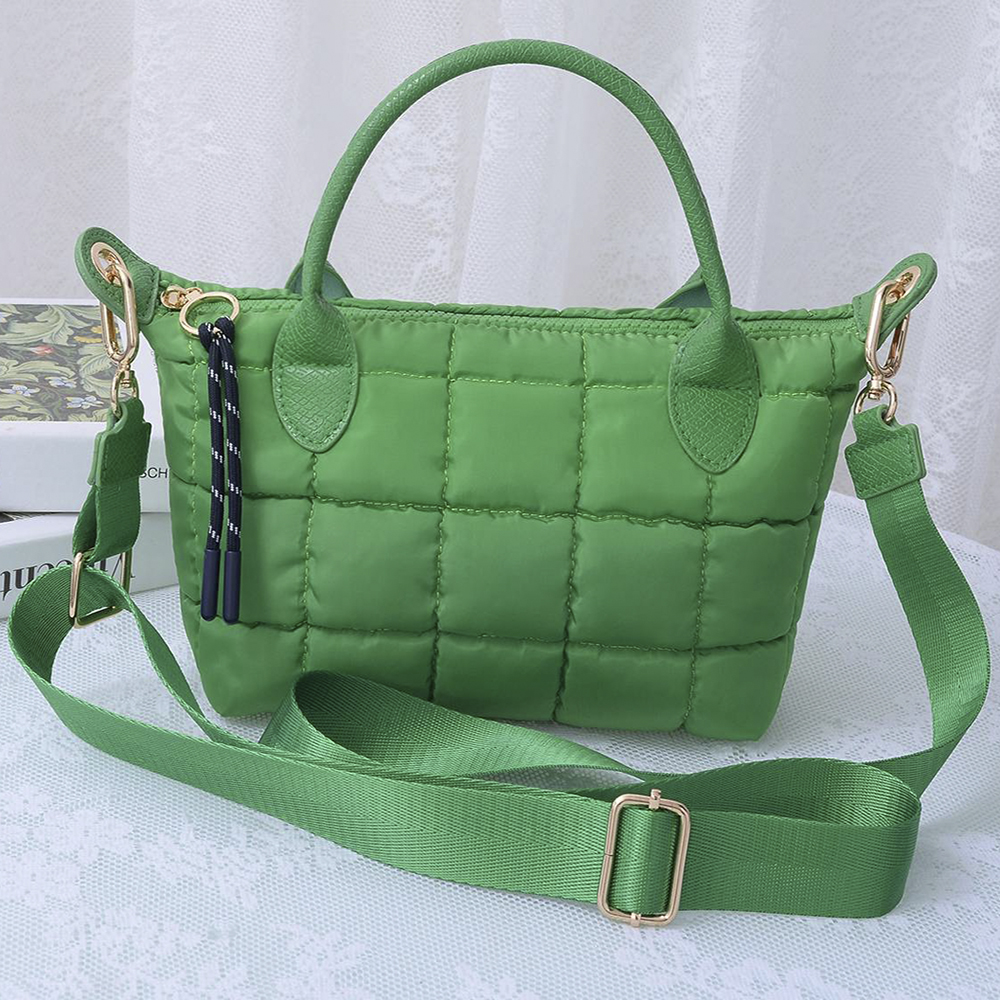 QUILTED CUSHION DESIGN HANDLE SATCHEL BAG