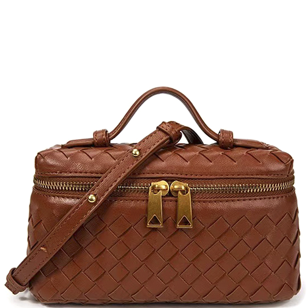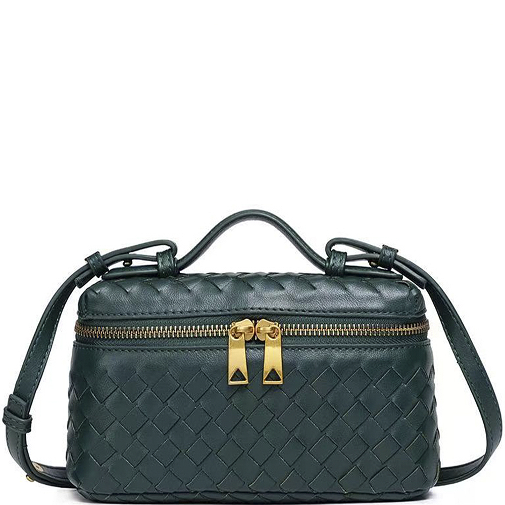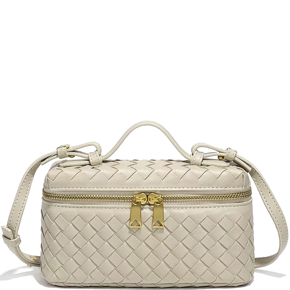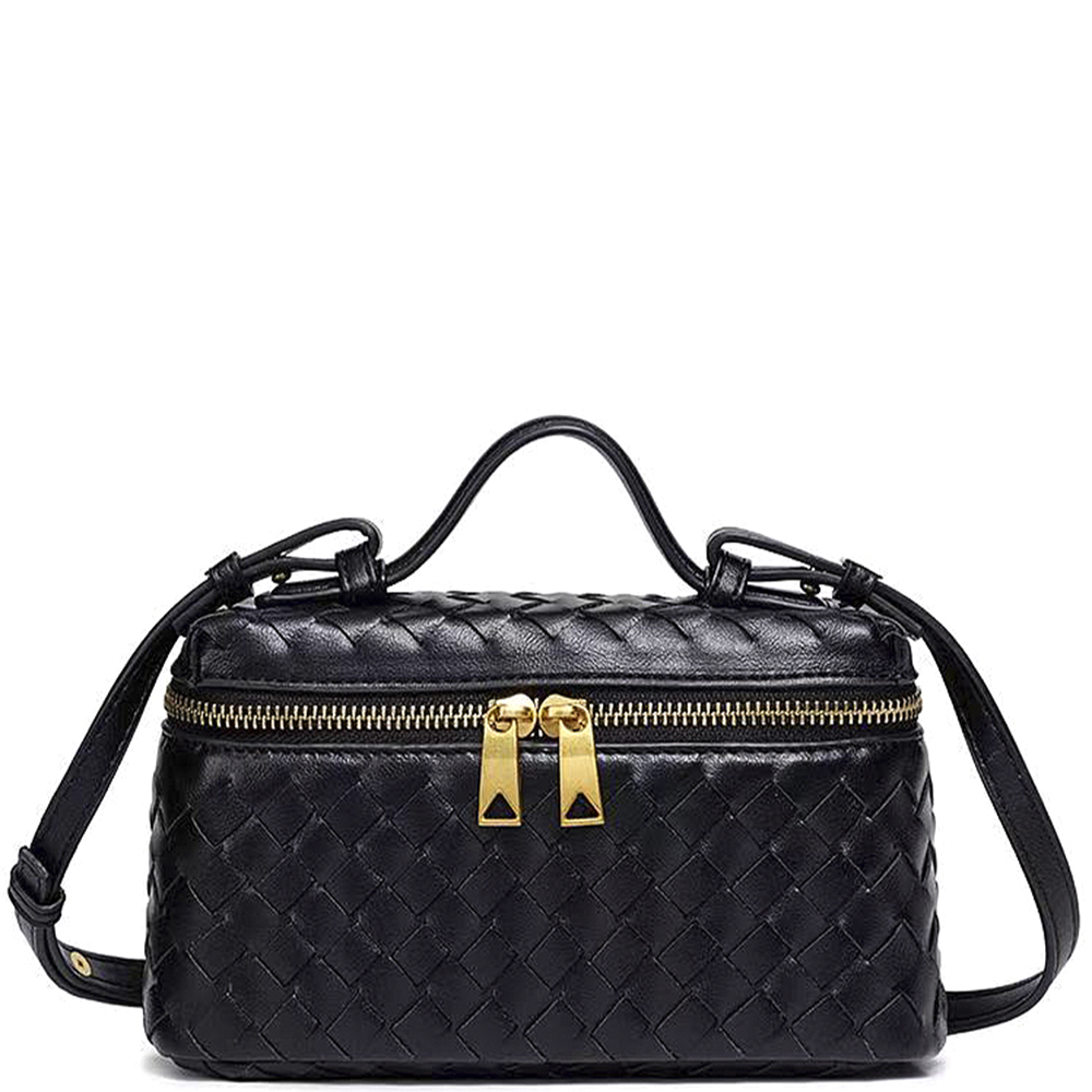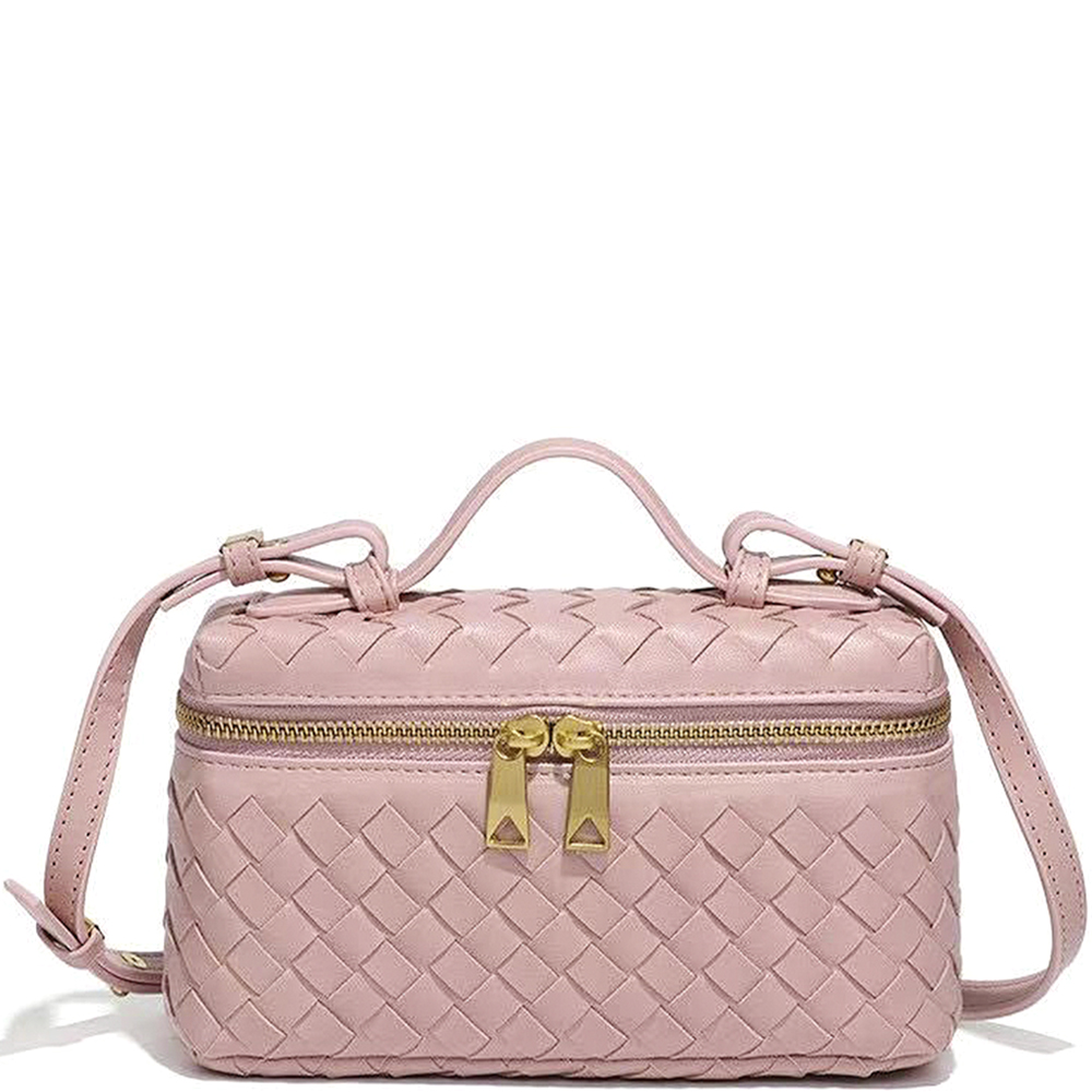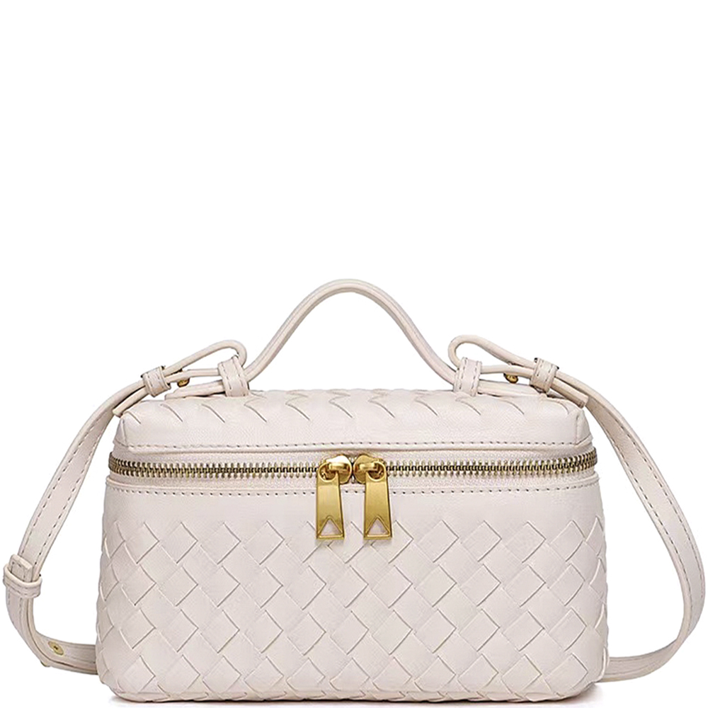 WOVEN DESIGN ZIPPER HANDLE SATCHEL BAG