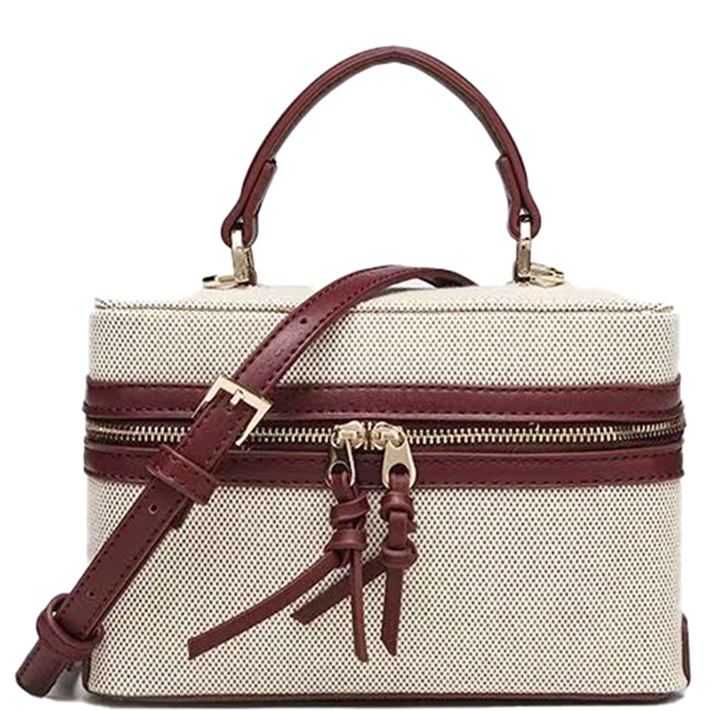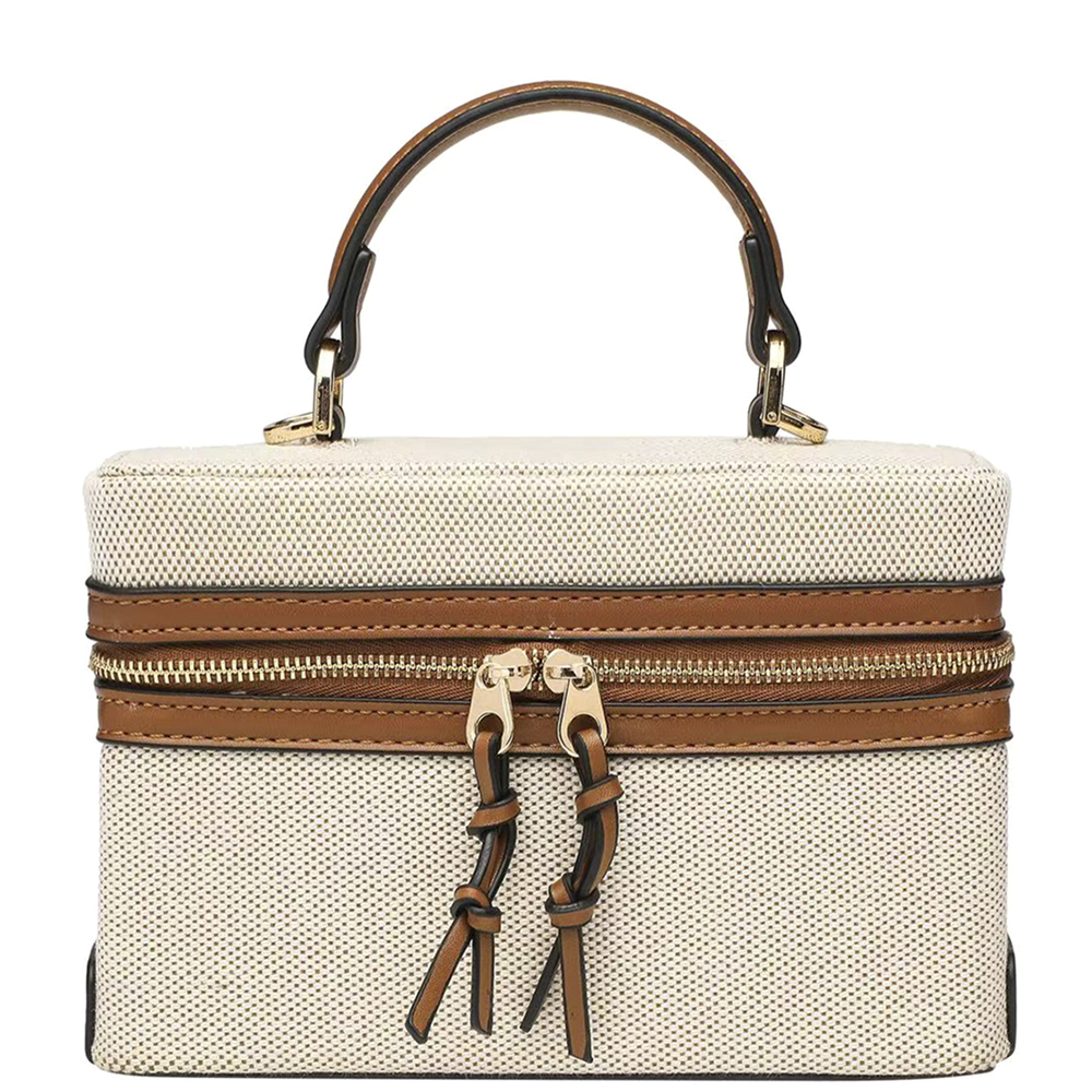 TEXTURED TWO TONE HANDLE SATCHEL BAG