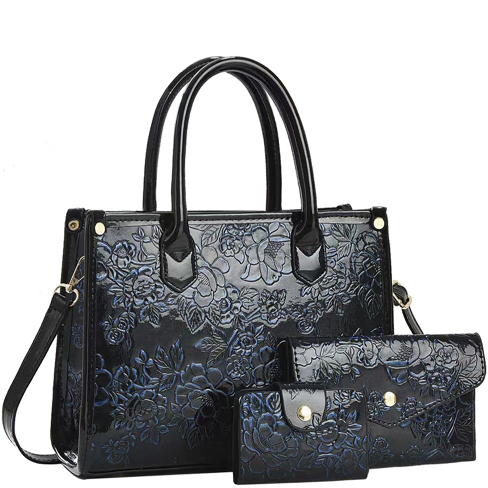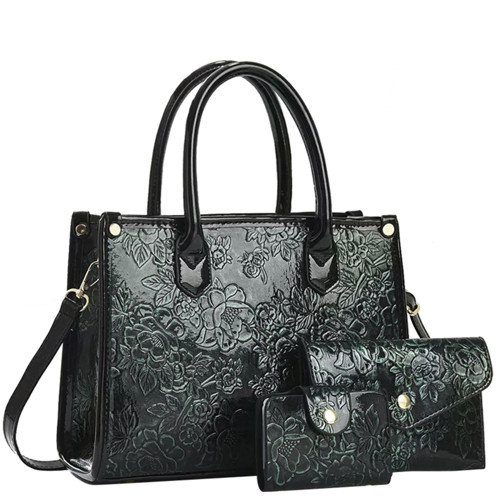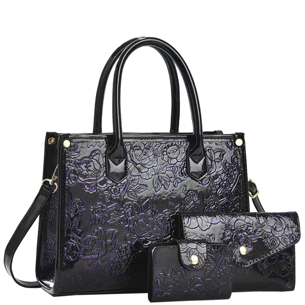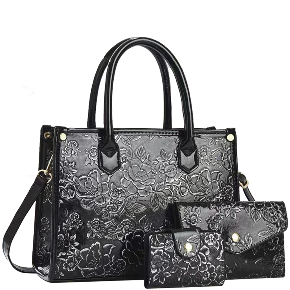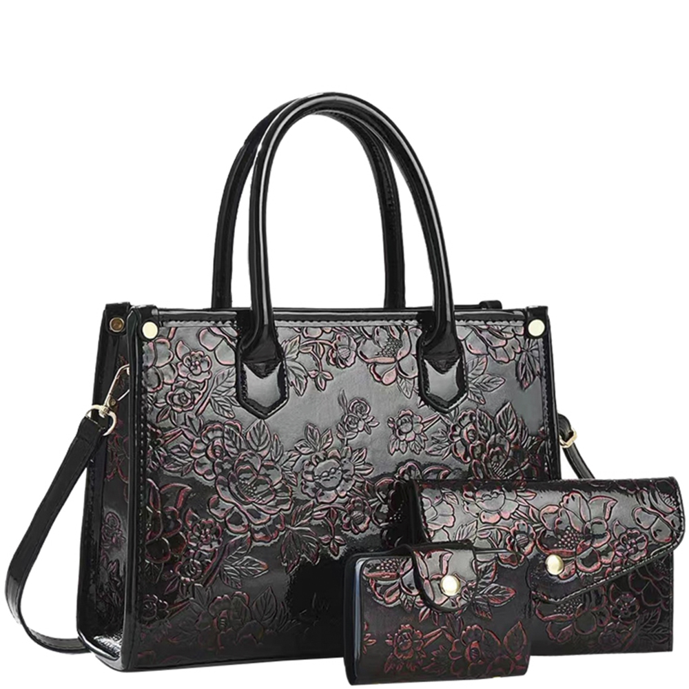 3IN1 FLORAL DESIGN SATCHEL W CLUTCH AND WALLET SET