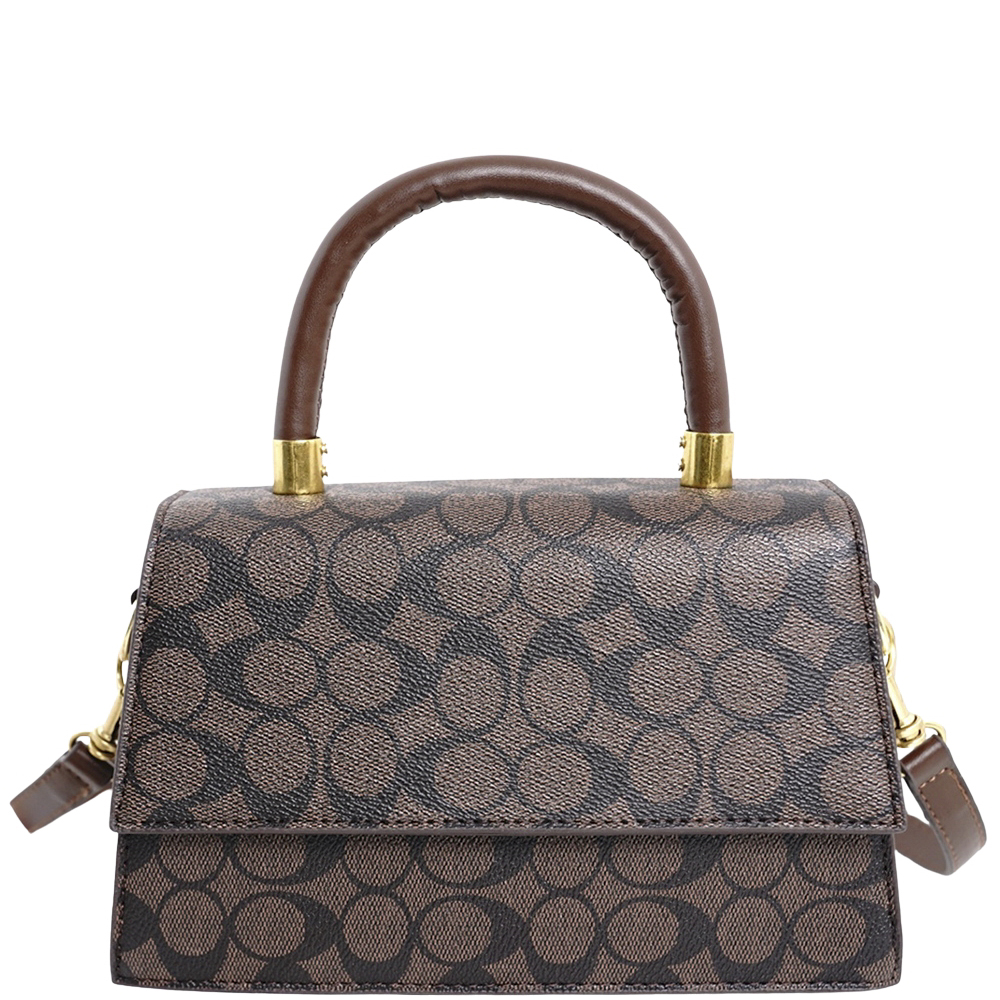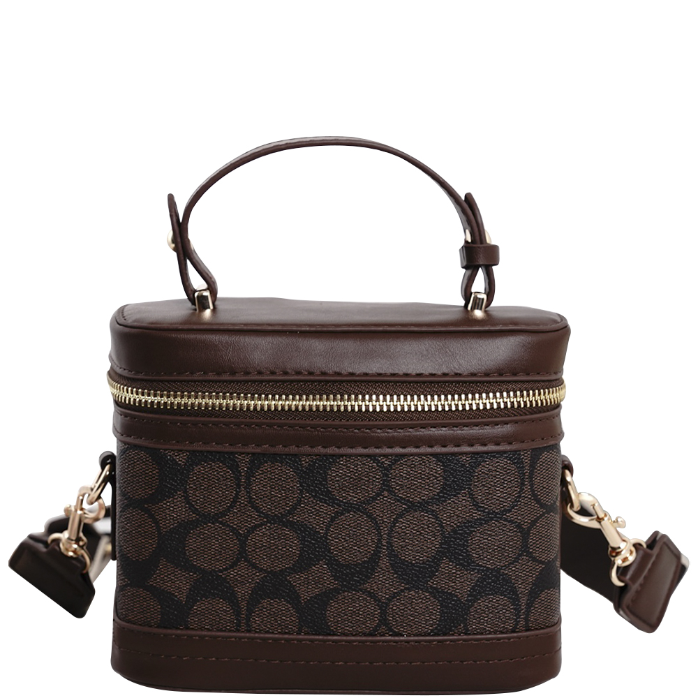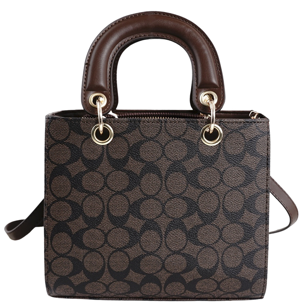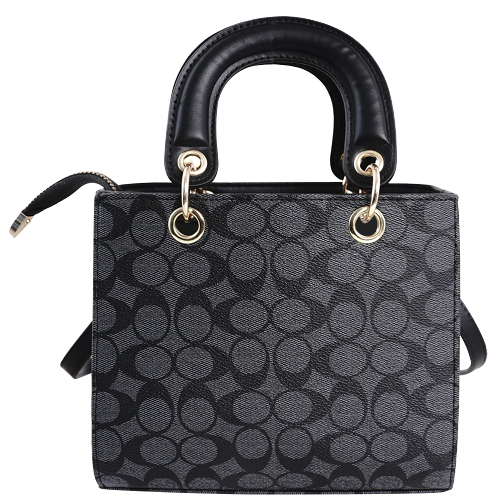 2IN1 MONOGRAM DESIGN TEXTURE HANDLE SATCHEL W WALLET SET