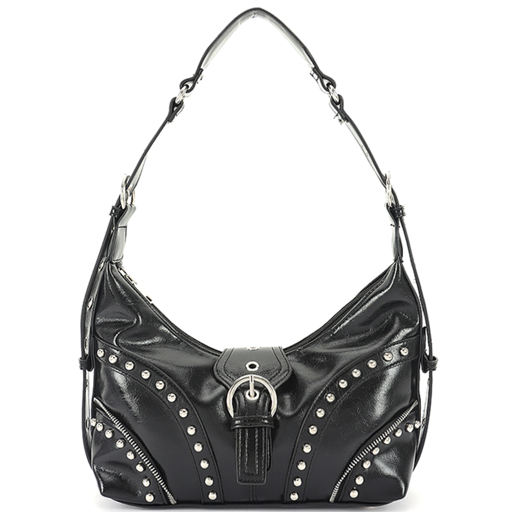 FASHION STUDDED TEXTURE SHOULDER BAG