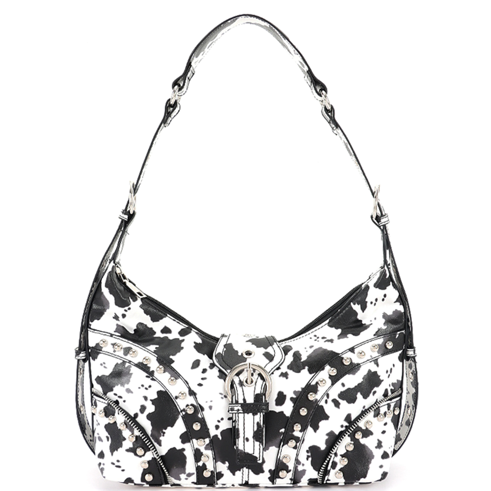 COW PRINTED TEXTURE ZIPPER SHOULDER BAG