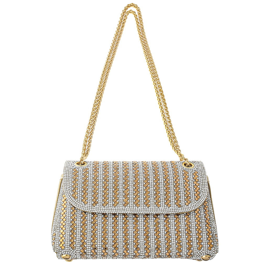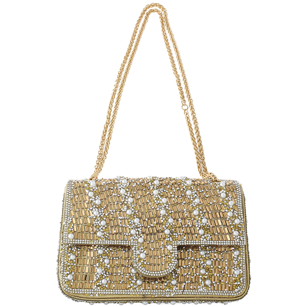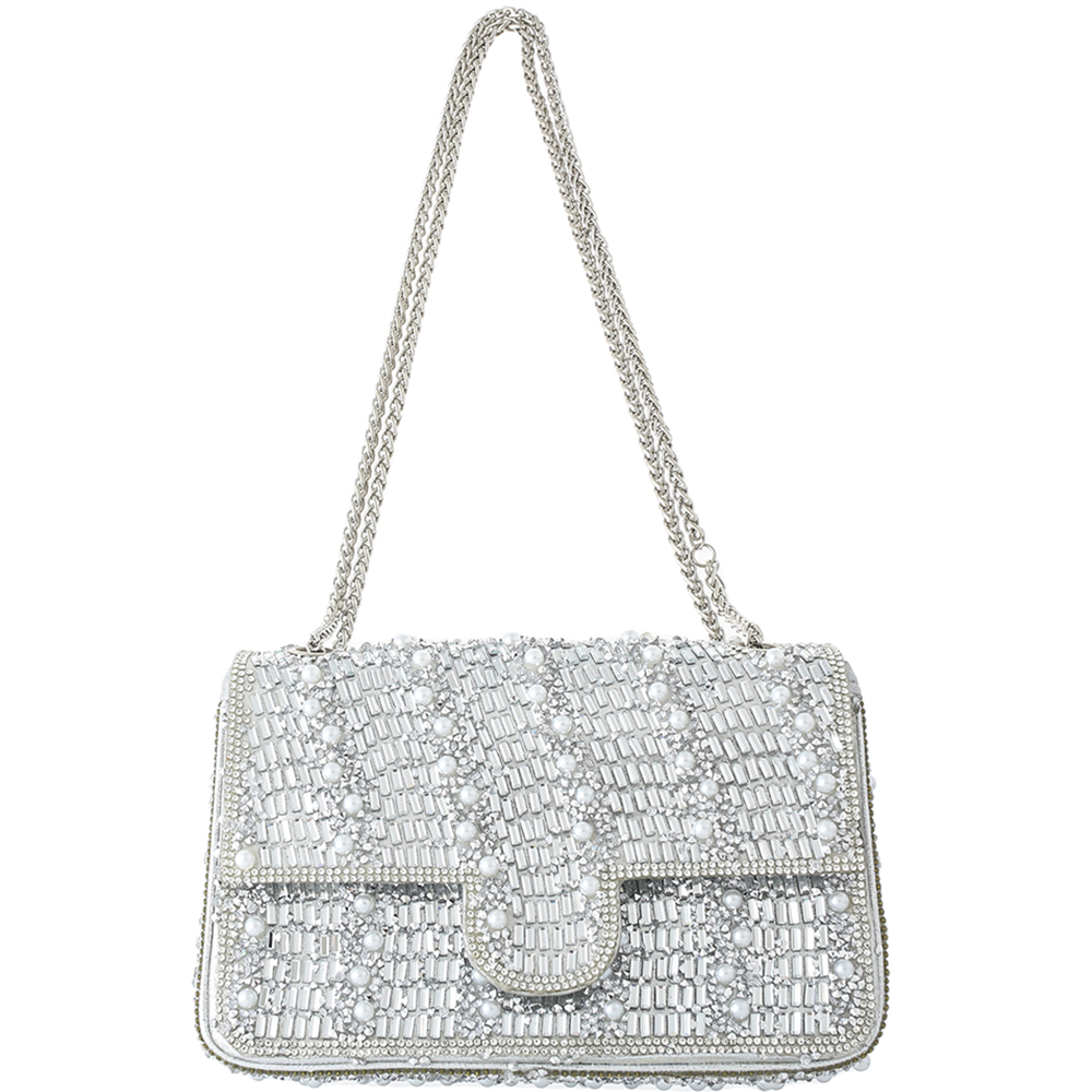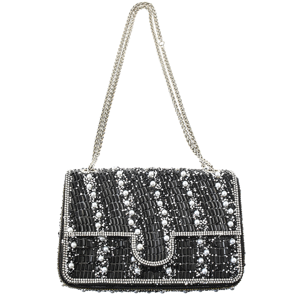 RHINESTONE PEARL STUD DESIGN SHOULDER BAG
