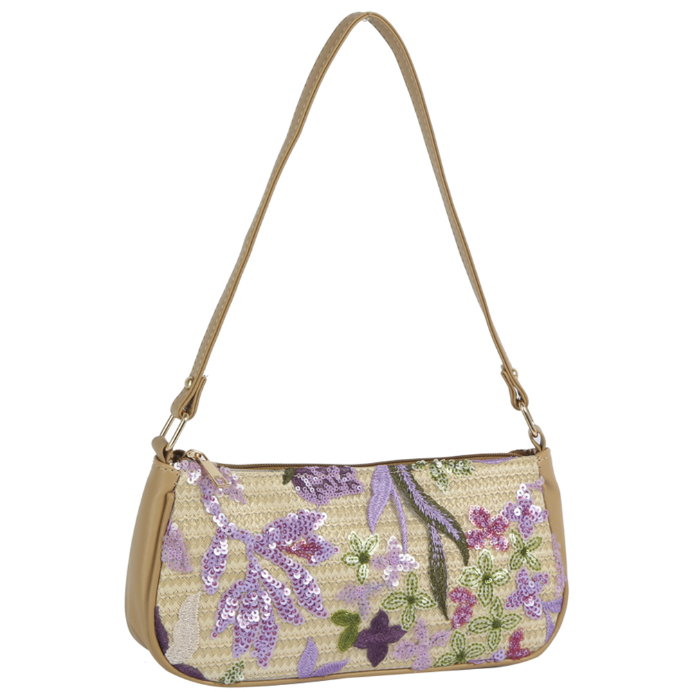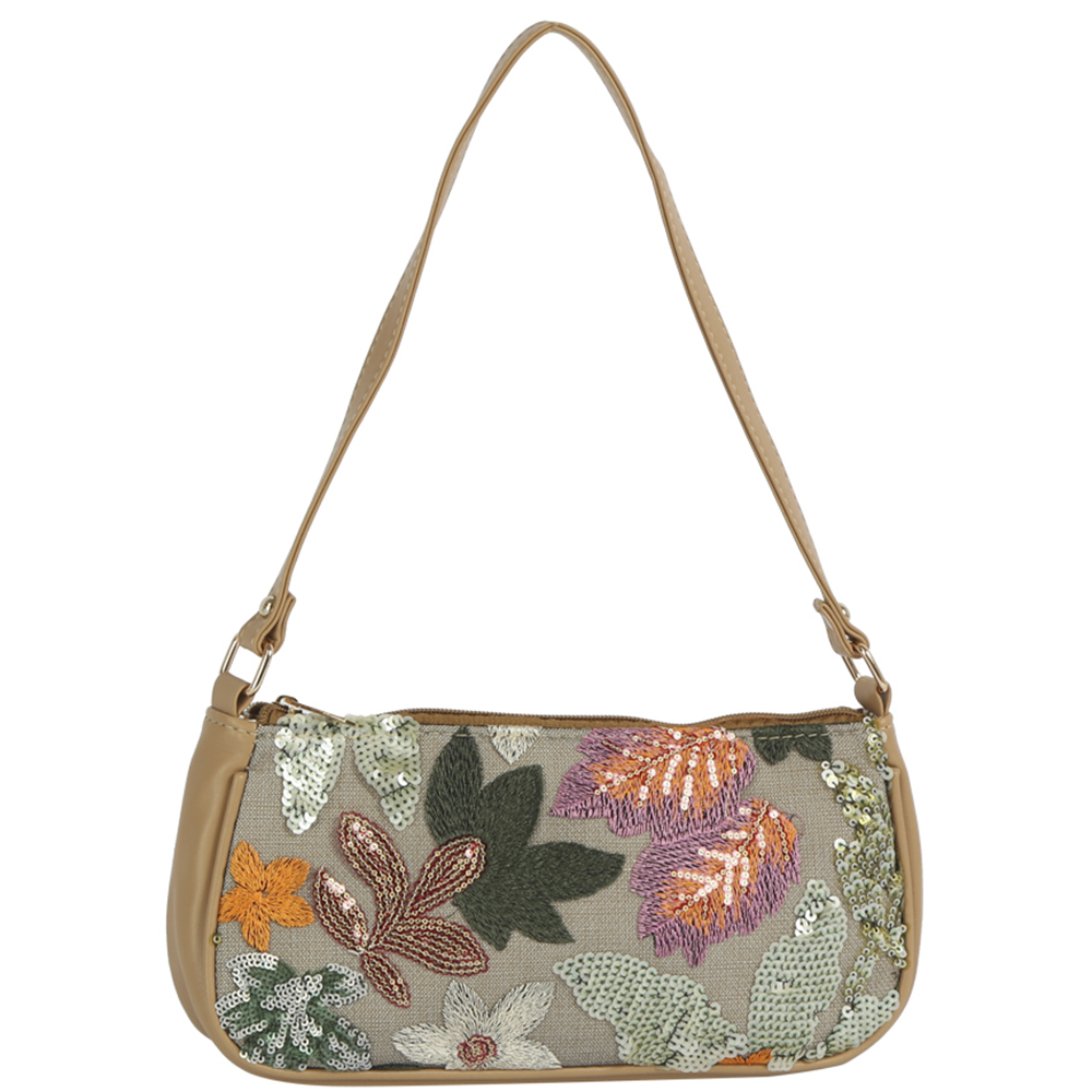 FLOWER EMBROIDERED SEQUIN DESIGN SHOULDER BAG