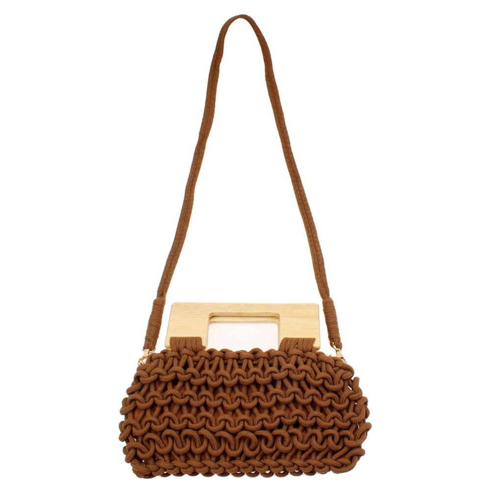 WOVEN CROCHET NET CROSS BODY WOODEN HANDLE BAG