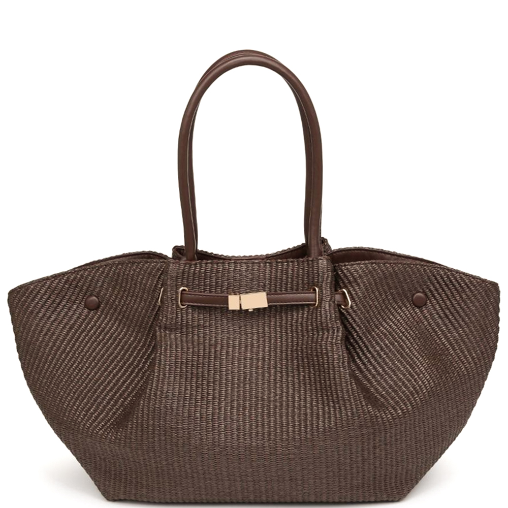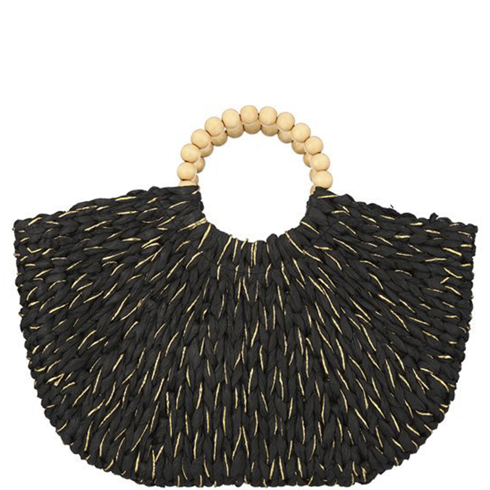 STRAW WOVEN HANDLE TURN LOCK HANDBAG