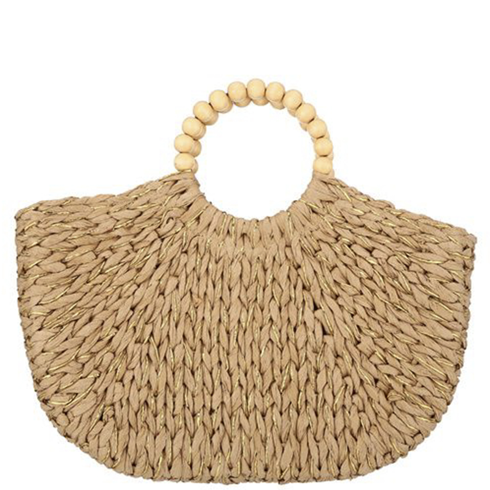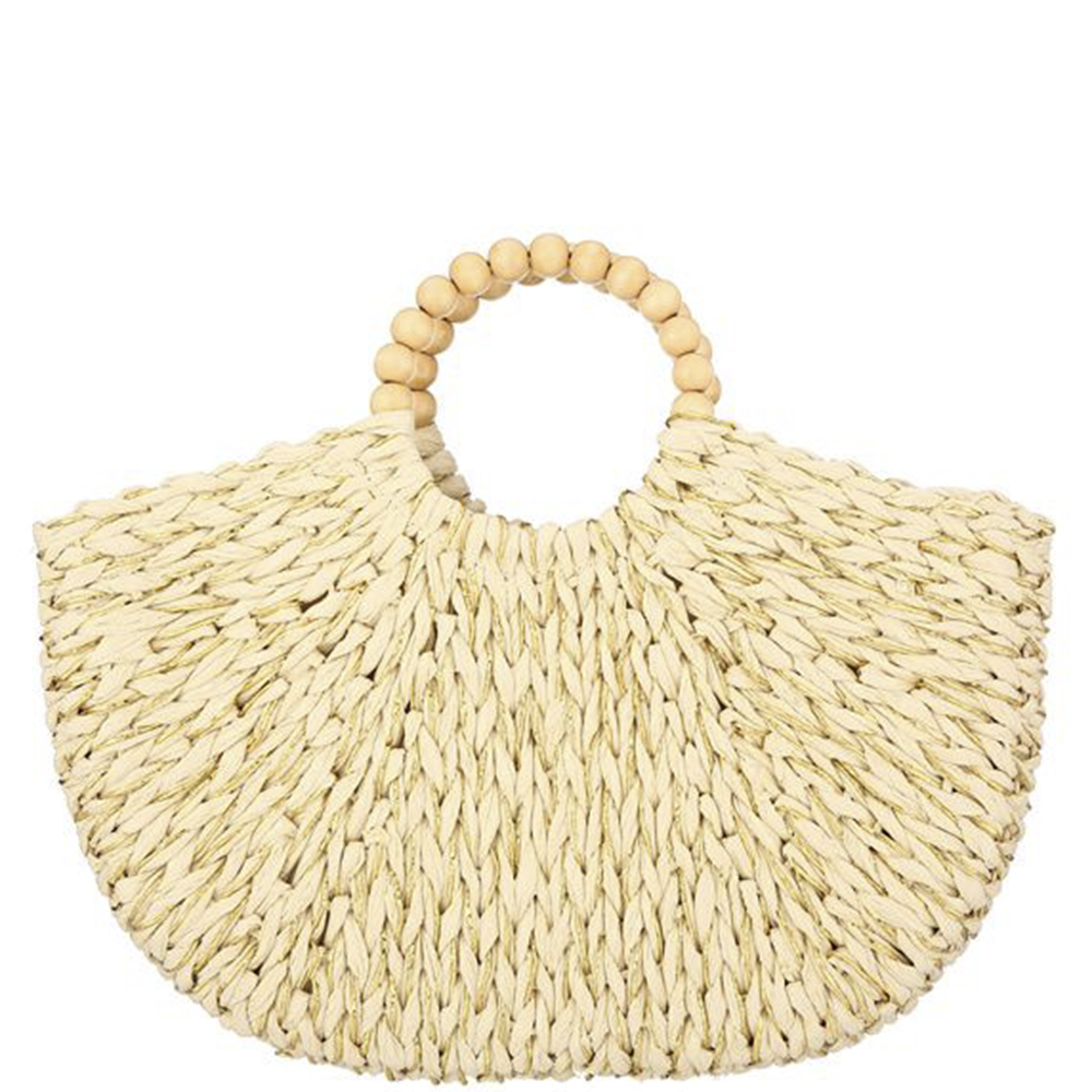 NATURAL STRAW BEADED HANDLE TOTE BAG