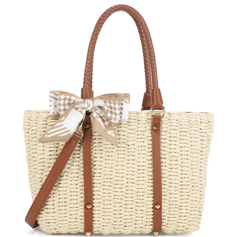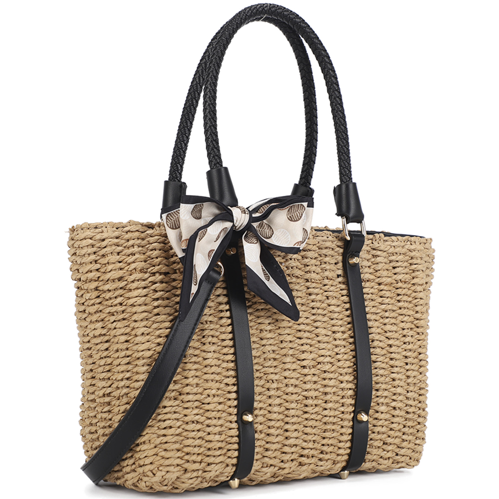 2IN1 WOVEN STRAW LORENZA TOTE W POUCH SET