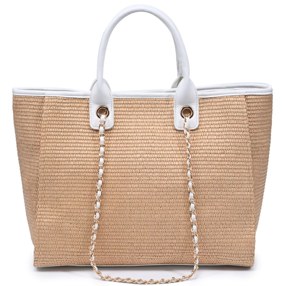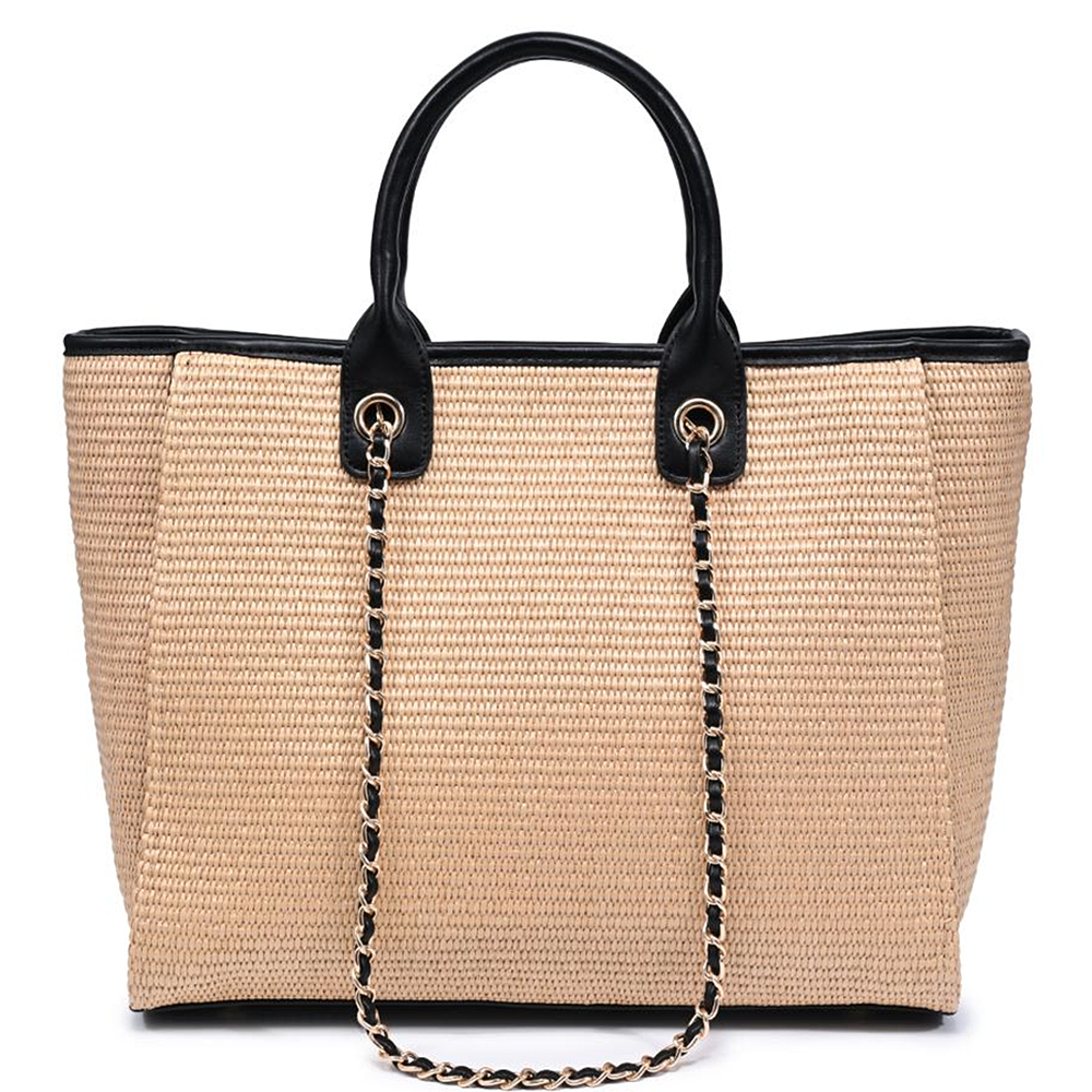 STRAW HANDLE CHAIN LINK TOTE BAG