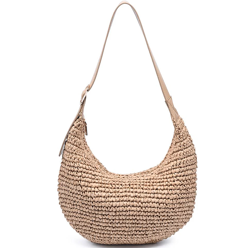 2IN1 STRAW DESIGN SHOULDER HOBO W POUCH SET