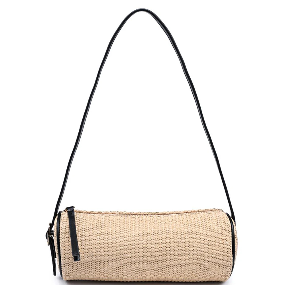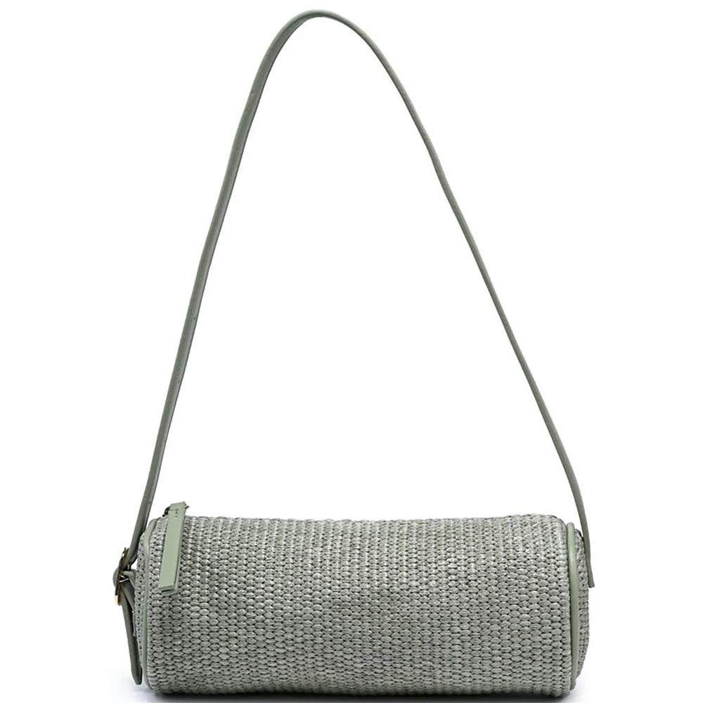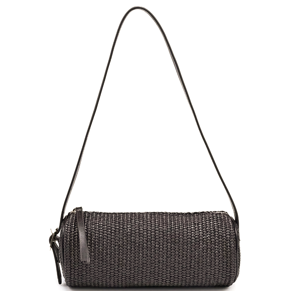 WOVEN STRAW CYLINDRICAL MILA SHOULDER BAG