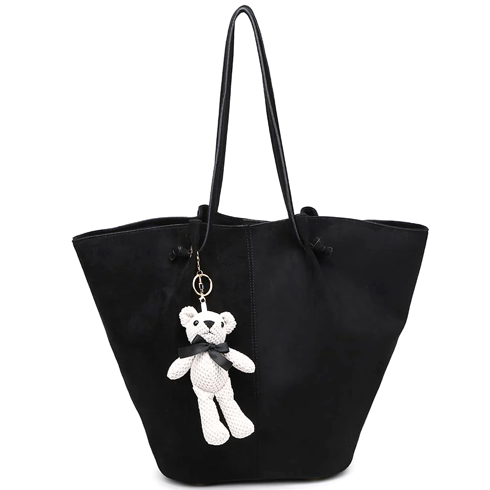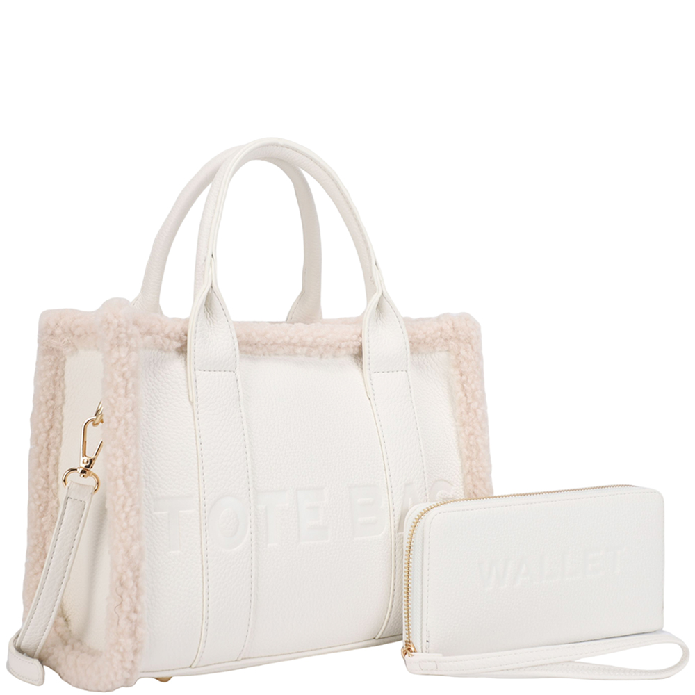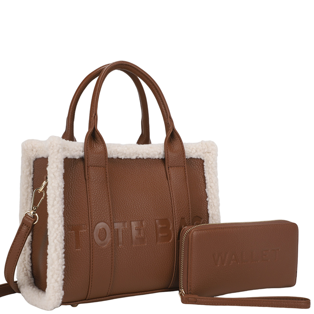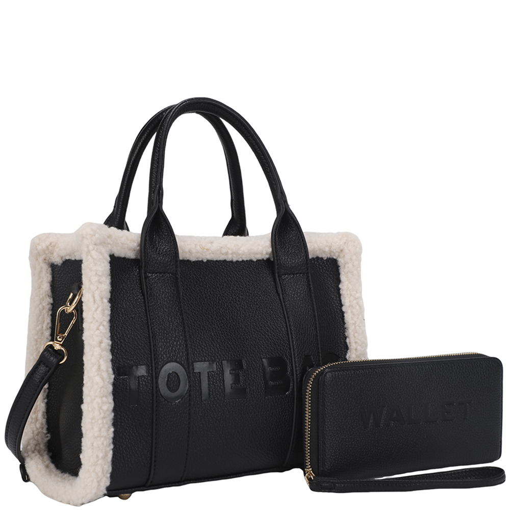 2IN1 FUR DESIGN TEXTURE TOTE BAG W WALLET SET