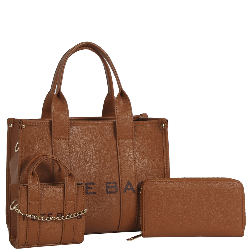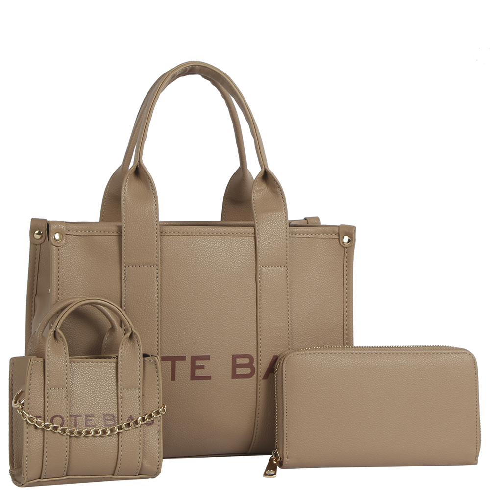 3IN1 SMOOTH TOTE BAG W SHOULDER AND WALLET SET