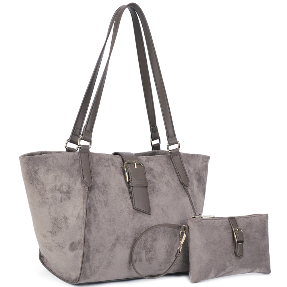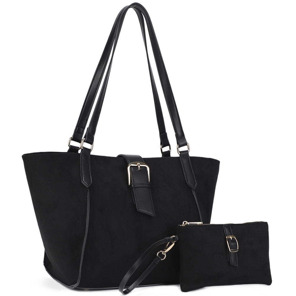 2IN1 BUCKLE DESIGN SHOULDER TOTE BAG W CLUTCH SET