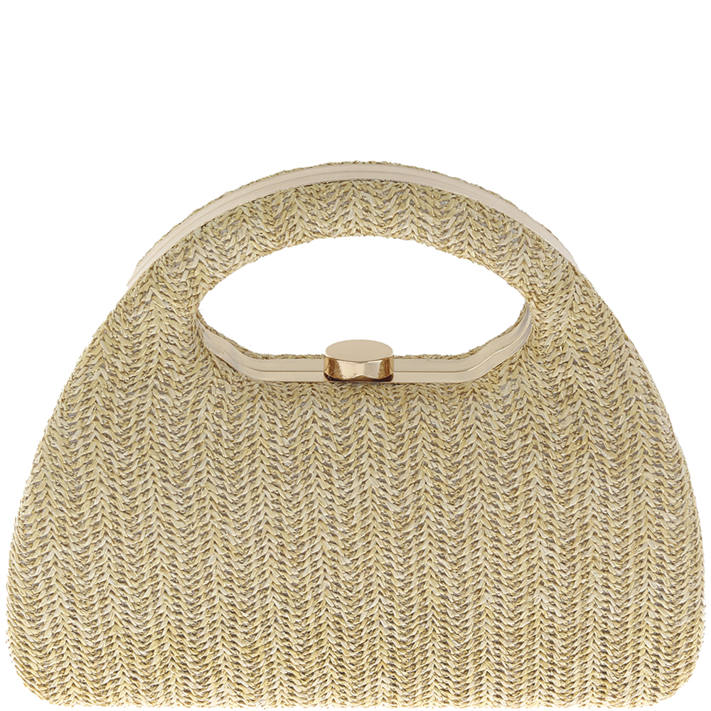 STRAW METALLIC TRIANGULAR HANDLE TOTE BAG