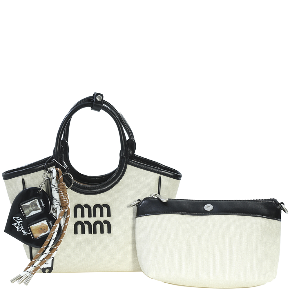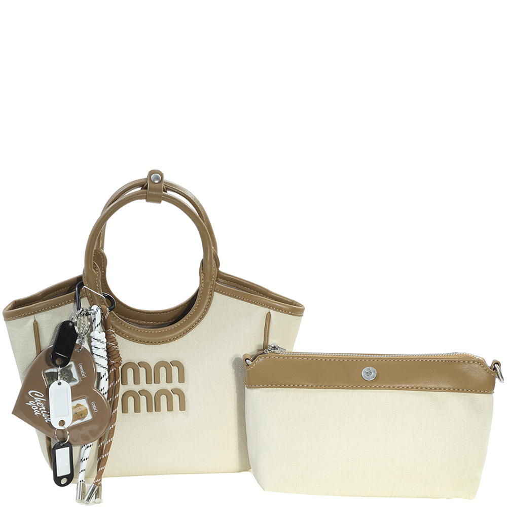 2IN1 STITCHING DESIGN TOTE BAG WITH MINI BAG SET
