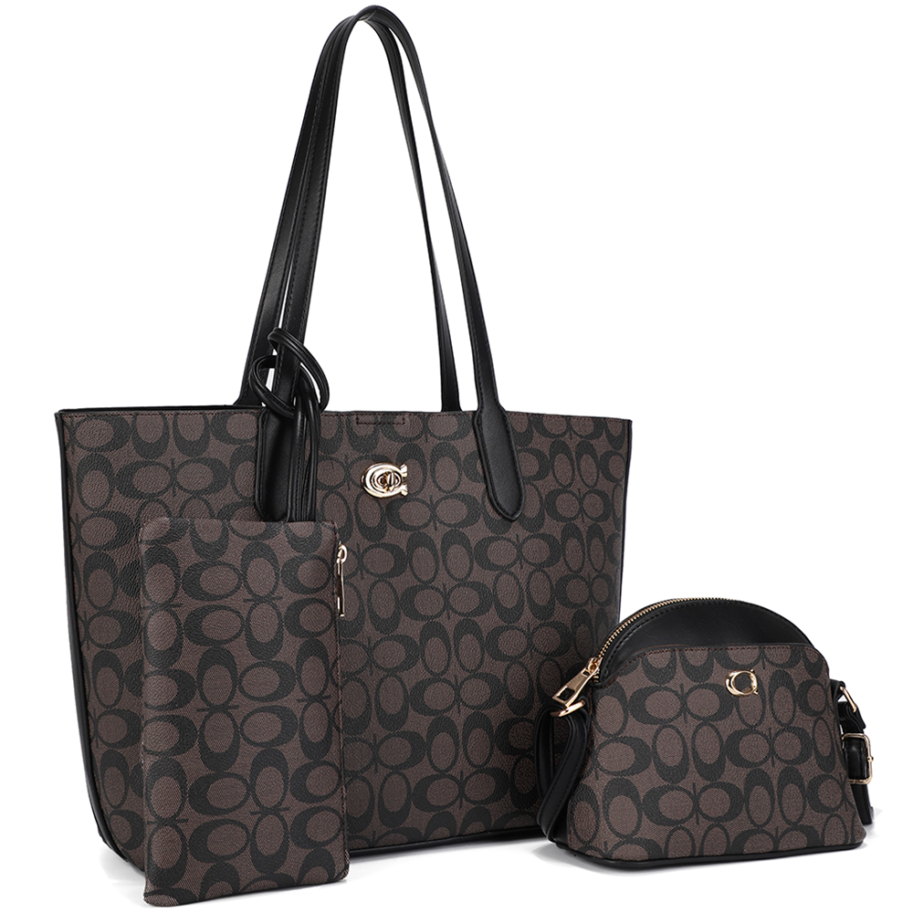 3IN1 OVAL PRINT TOTE W CROSSBODY AND CLUTCH SET