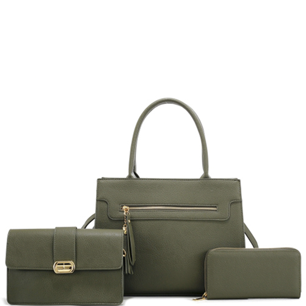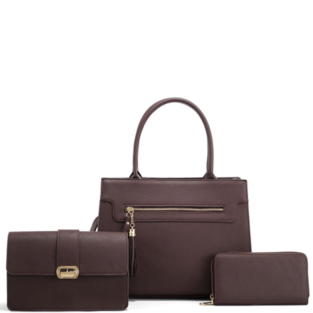 3IN1 TASSEL ZIPPER DESIGN HANDLE BAG W CROSSBODY AND WALLET SET