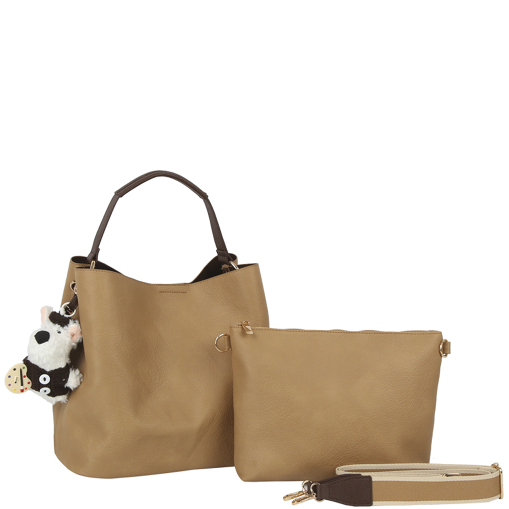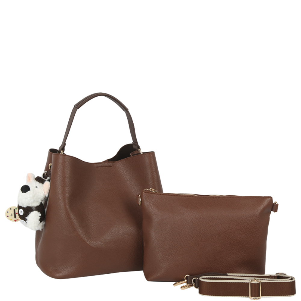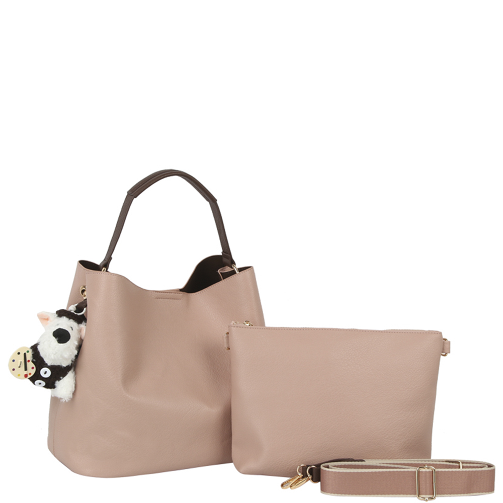 2IN1 SMOOTH PLAIN SHOULDER TOTE BAG W CROSSBODY SET