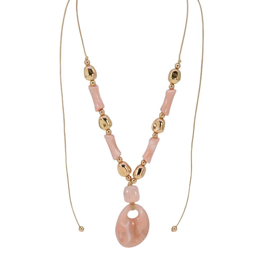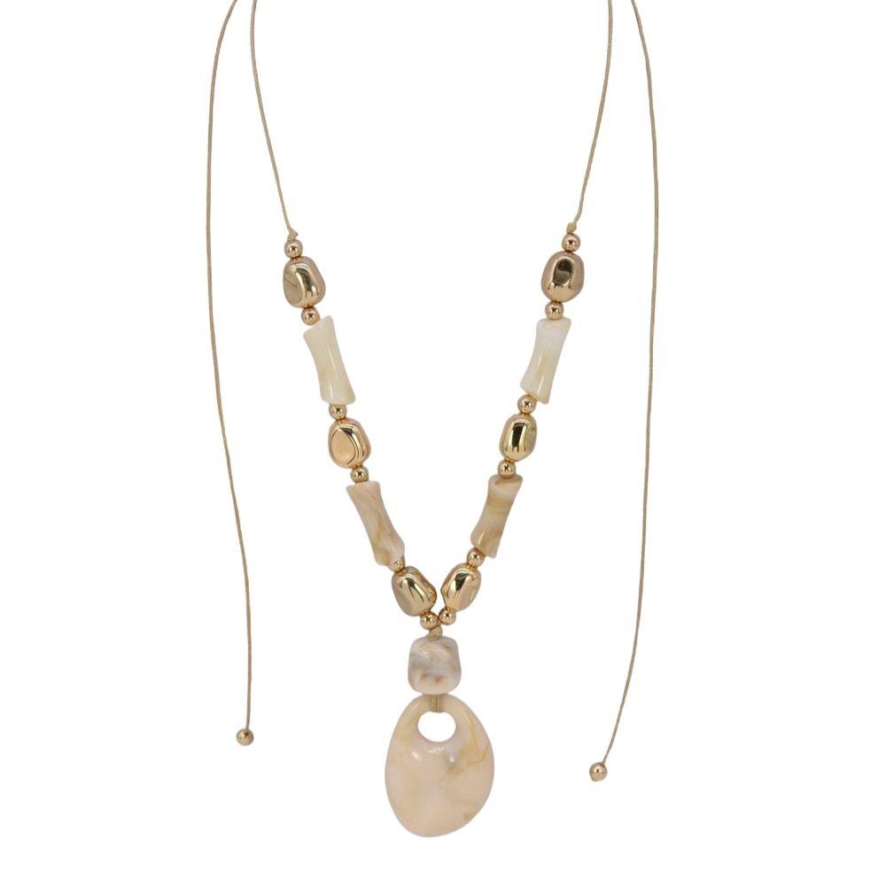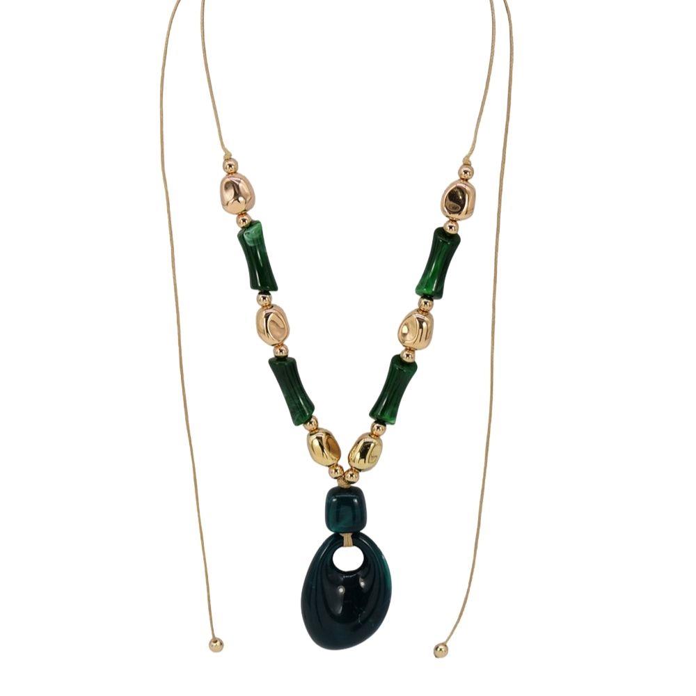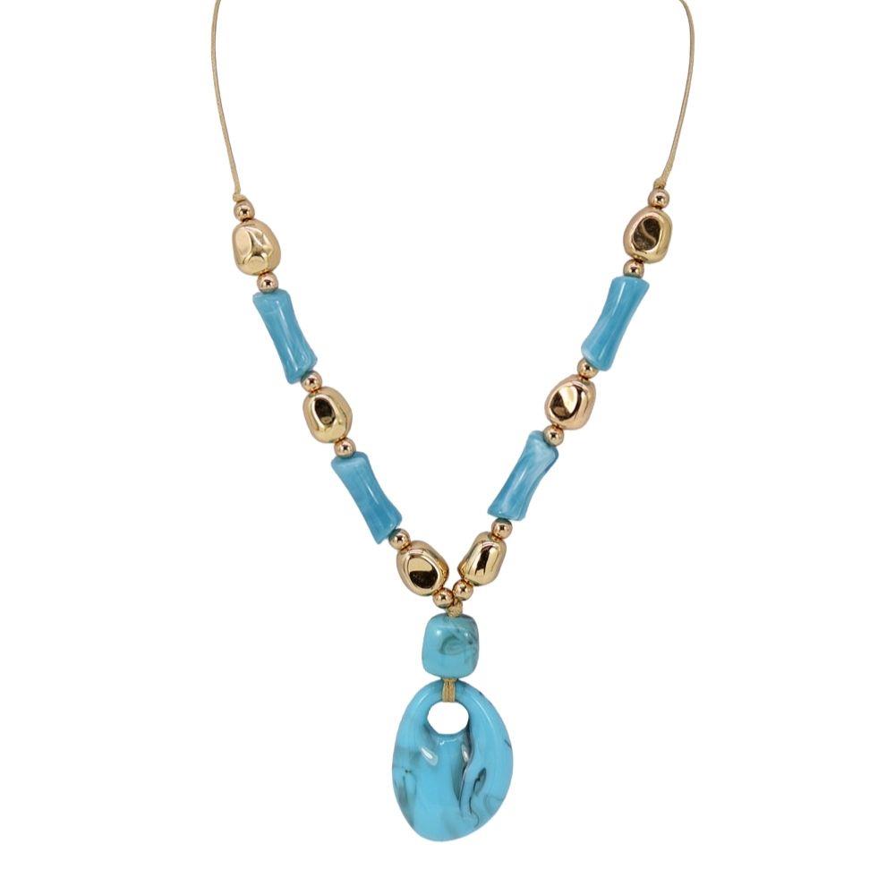 METAL CHARM RESIN LONG OVAL BEAD NECKLACE