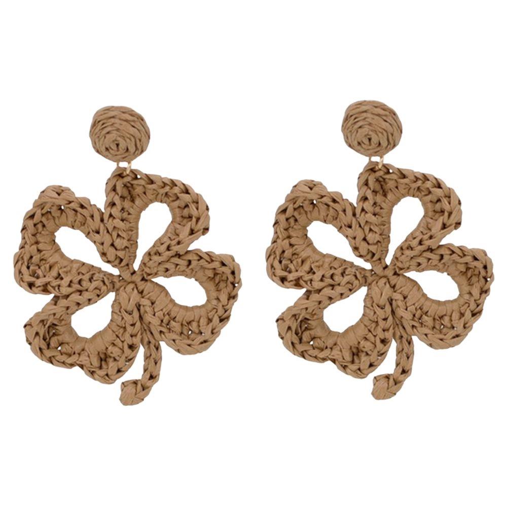RAFFIA FLOWER DANGLE EARRING