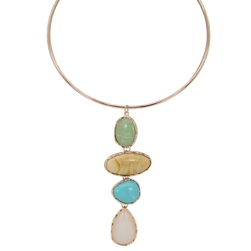 MULTI STONE DROP PENDANT NECKLACE
