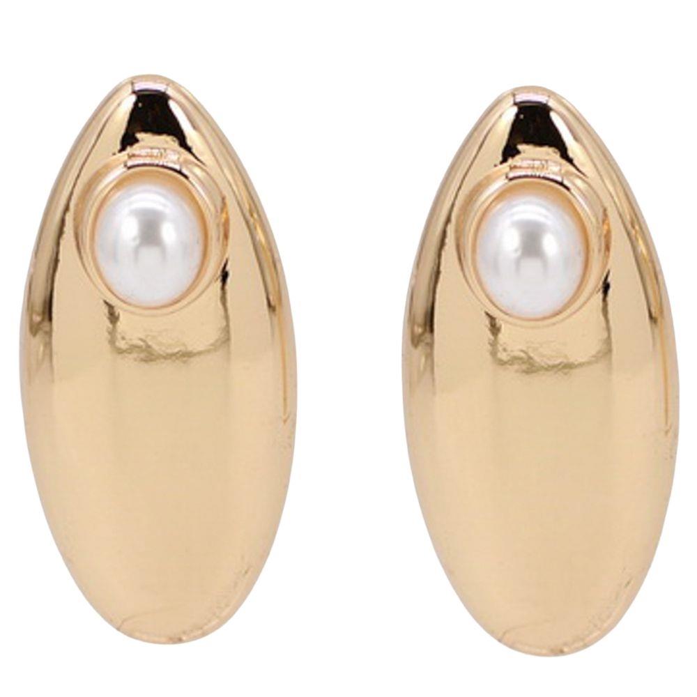 METAL PEARL ACCENT STUD EARRING